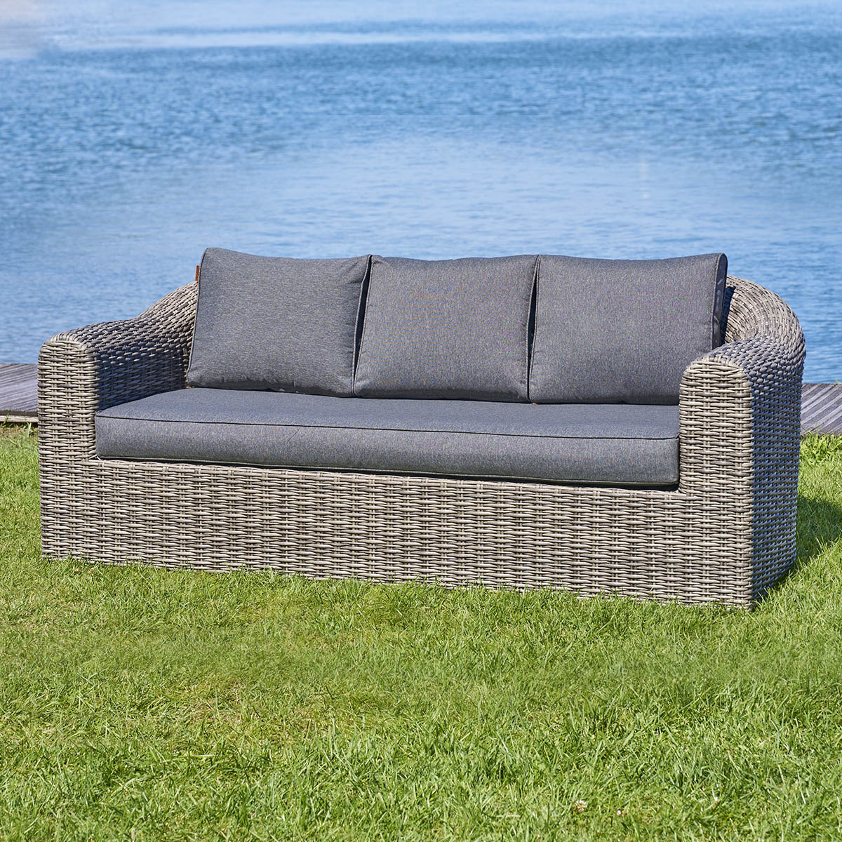Vous passerez d'agréables moments avec vos amis grâce à ce canapé 3 places moderne et confortable. Les coussins sont épais et déhoussables pour simplifier leur lavage. La structure en aluminium traité époxy résiste à la rouille et aux UV.