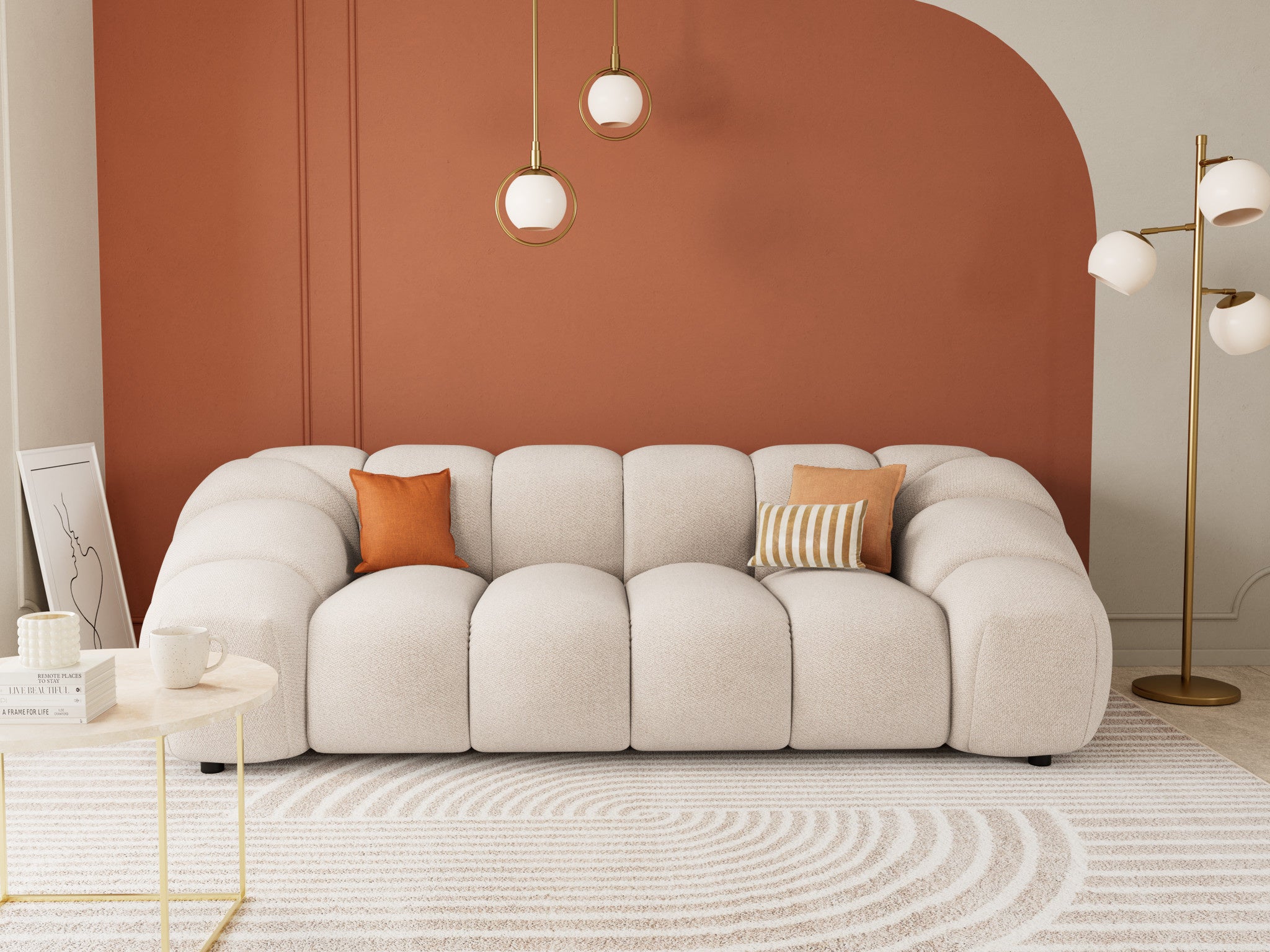 Canapé droit 3 places en velours texturé beige - AVA - Best Mobilier
