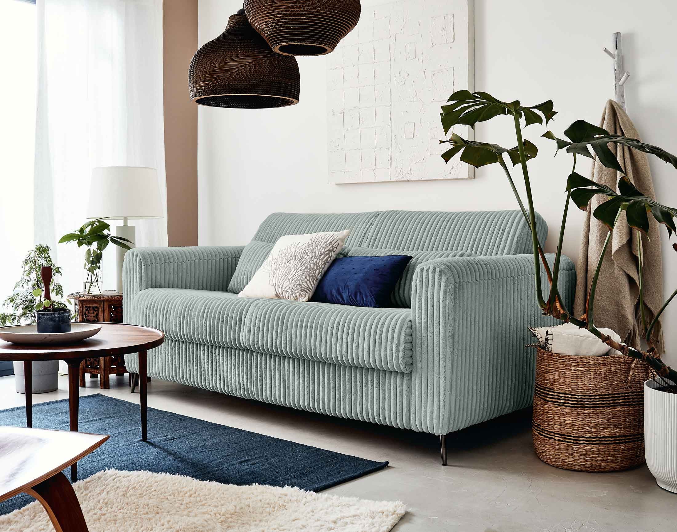 Canapé droit convertible 3 places en velours grosses côtes bleu - OWEN - Best Mobilier