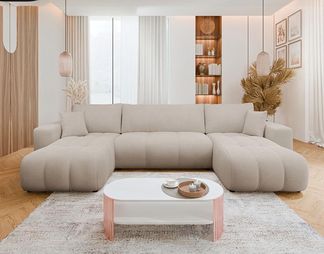 Derrière ses lignes généreuses, Nicole dissimule une vraie maîtrise de l’espace. Convertible d’appoint, il se transforme en un lit confortable en quelques secondes pour accueillir vos invités sans effort. Son coffre de rangement intégré, spacieux et discret, permet de garder couvertures, oreillers ou jeux de société toujours à portée de main, sans encombrer le salon. Pensé pour conjuguer esthétisme et fonctionnalité, Nicole offre un confort XXL au quotidien, dans un esprit résolument pratique et accueillant.