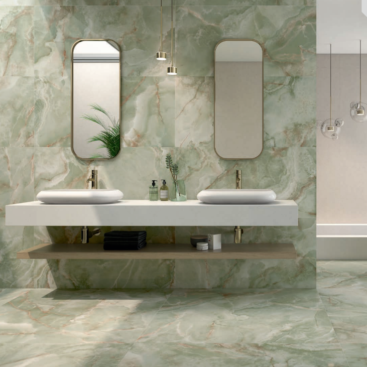 Carrelage Espagnol Effet/Imitation Marbre Onyx DIAMANT VERT Poli 60x120 - Maison du Revêtement