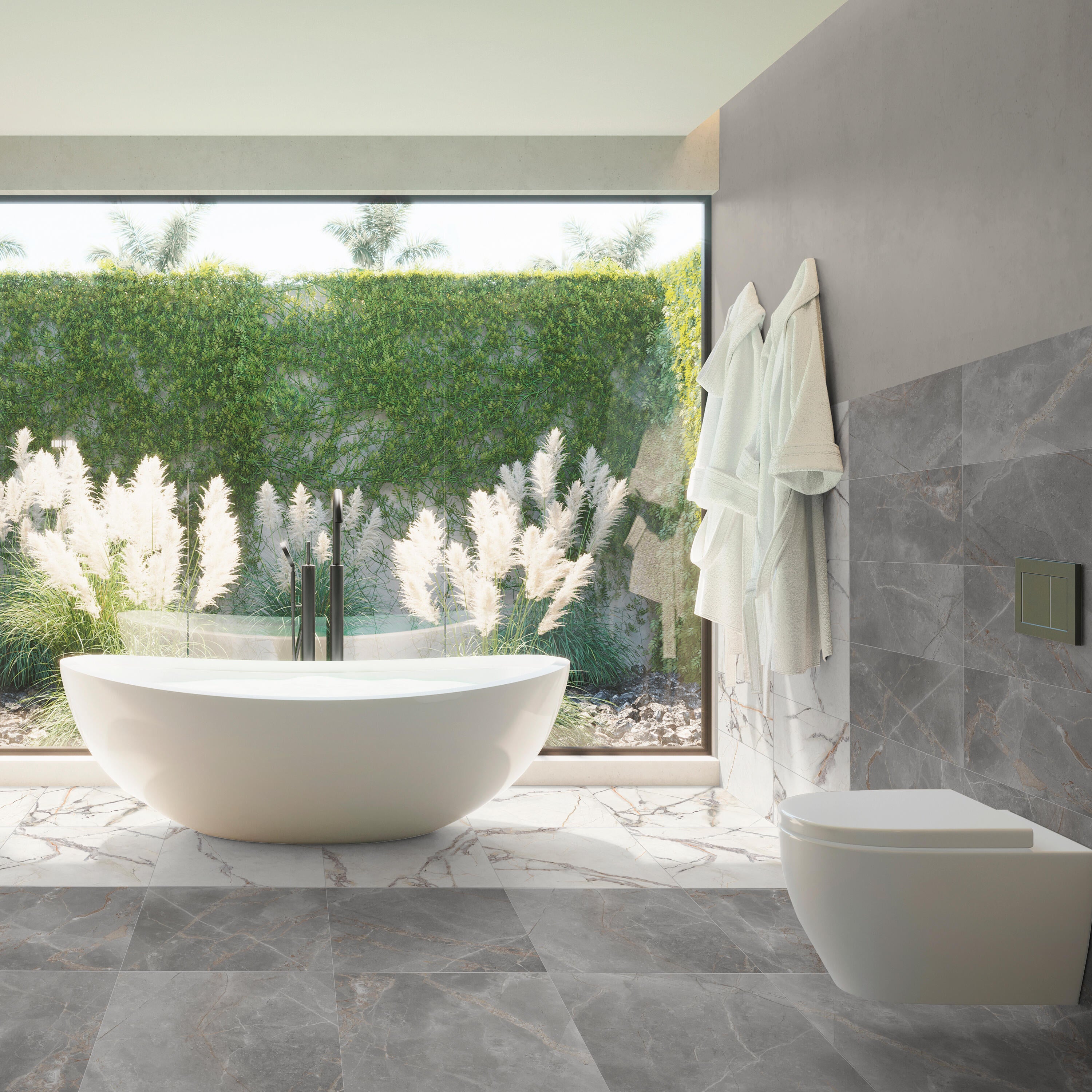 Carrelage sol intérieur effet marbre gris Iberis l.30 x L.60 cm