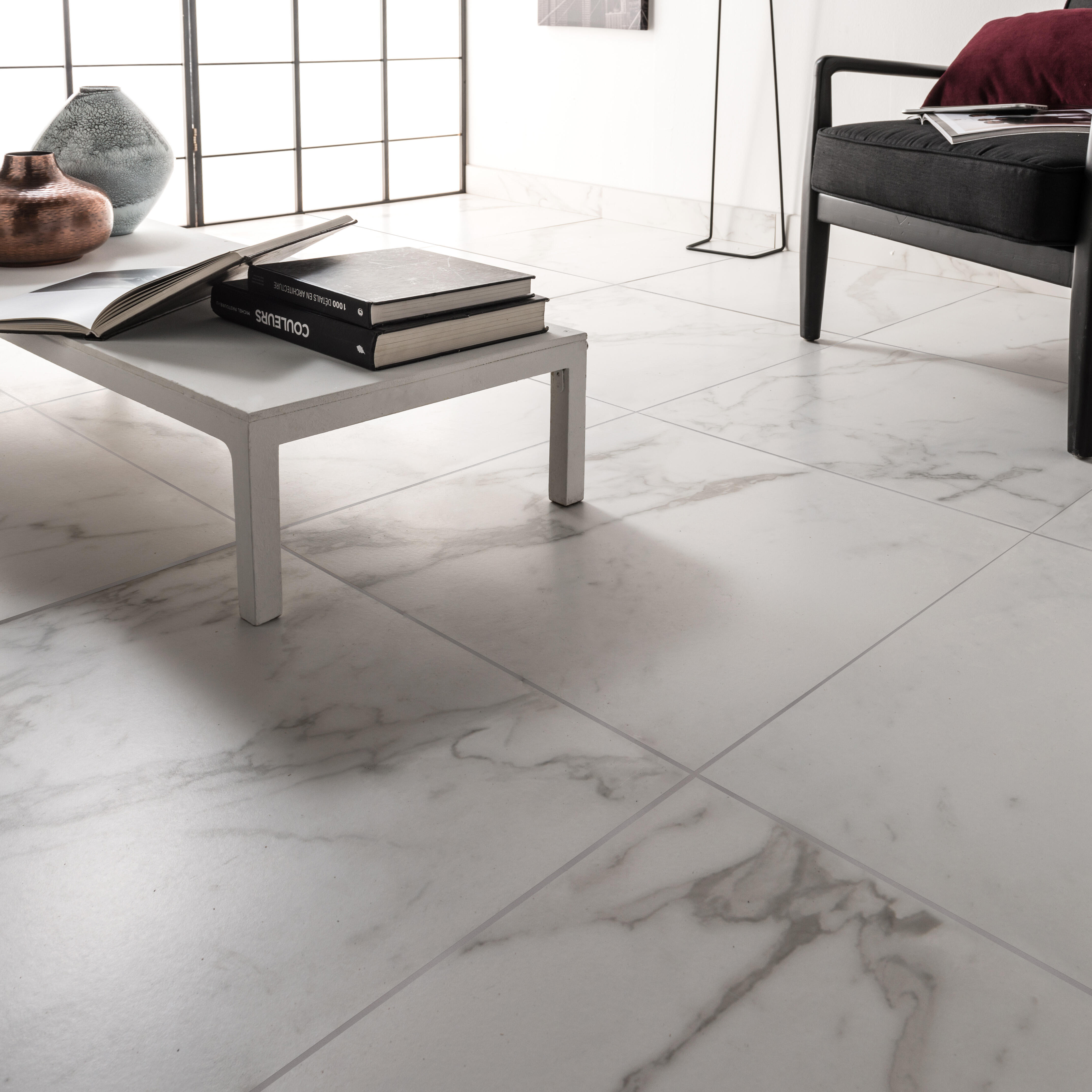Carrelage sol intérieur / mur intérieur effet marbre blanc Murano l.60 x L.60 cm