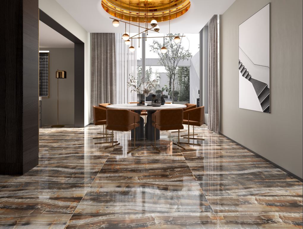 Carrelage sol/mur effet marbre marron ONYX RAINBOW DARK Full lappato int/ext l.120 x L.60 cm CERALUX