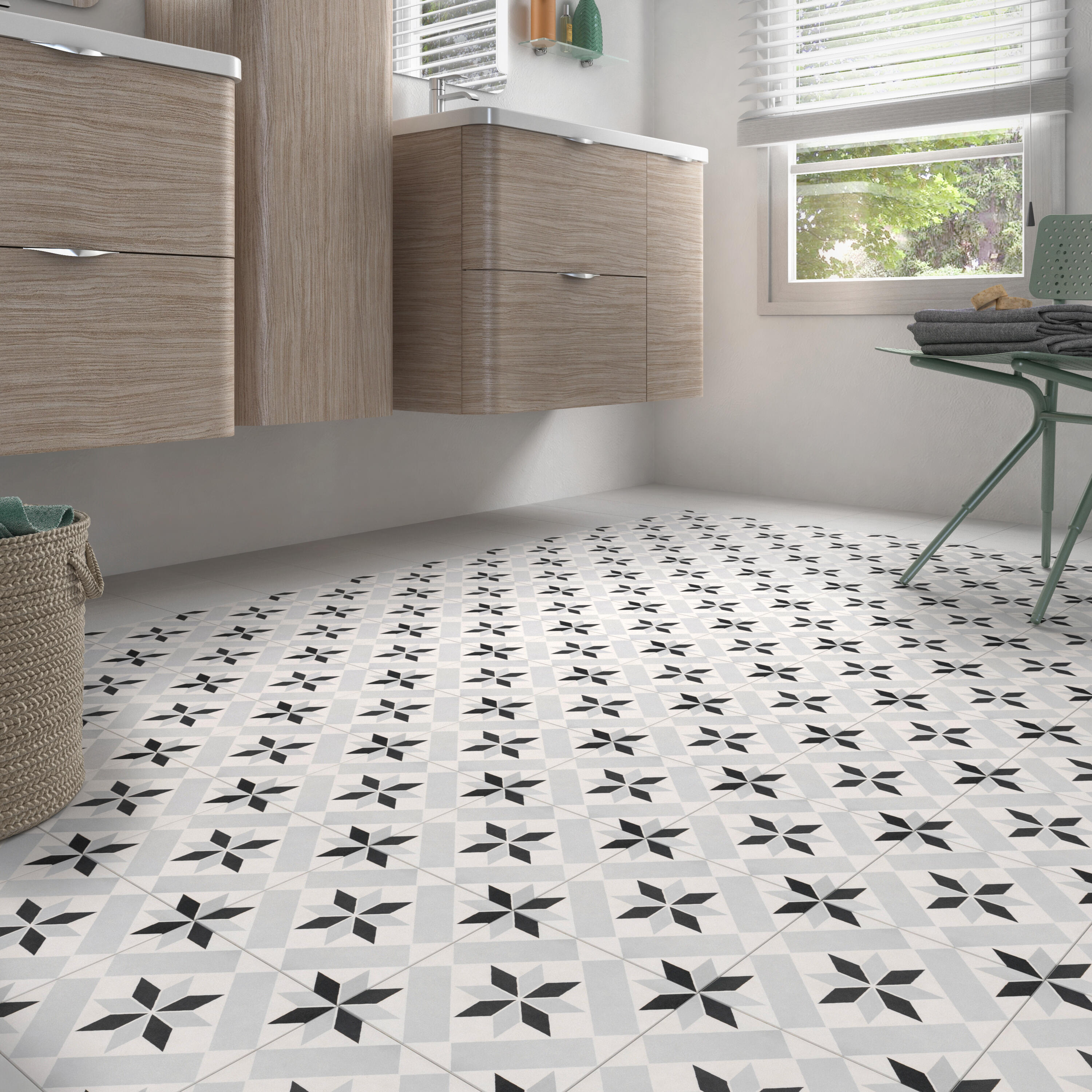 La combinaison de couleurs et de graphismes rend cette collection adaptée à toutes les pièces de la maison, principalement pour la cuisine et la salle de bain.