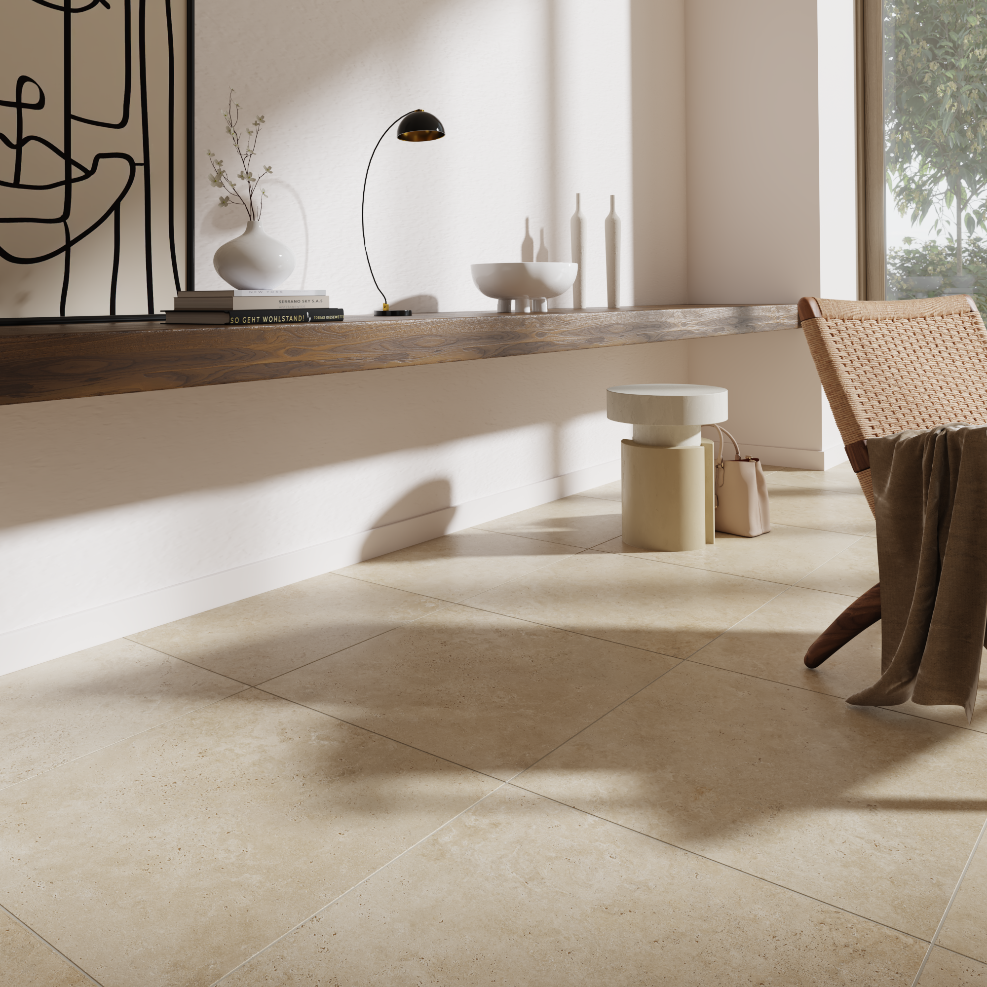 Carrelage sol/mur intérieur effet travertin beige Koos l.59.8 x L.59.8 cm ARTENS