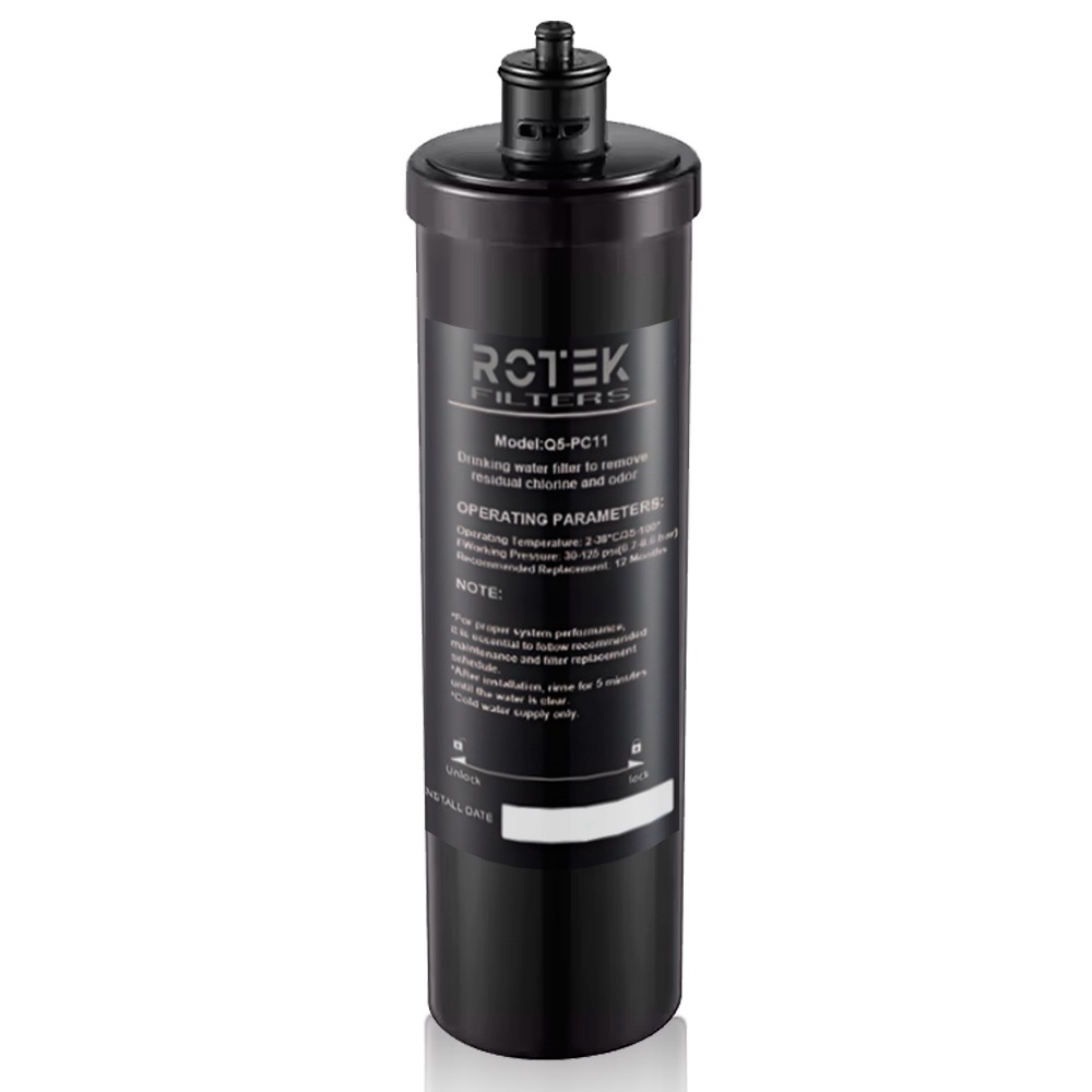 Voir les produits de la même catégorieCartouche de remplacement pour système de filtration d'eau sous évier ROTEK capable d'éliminer la rouille, le plomb, le chlore, les métaux lourds, les impuretés chimiques, la turbidité, les mauvaises odeurs et les saveurs avec certification NSF de l'eau potable. Filtration sélective efficace :Cartouche conçue avec une haute technologie capable de retenir la plupart des éléments indésirables dans l'eau tels que :- Oxyde - Plomb - Chlore - Turbidité - Chloroforme - Chlorobenzène - Métaux lourds - Toute substance ayant une odeur ou une saveur - SableCela l'a amené à obtenir le certificat NSF/ANSI pour l'eau potable.Avec une conception en accordéon de la zone de filtration, il parvient à augmenter sa capacité 20 fois pour obtenir un plus grand débit, capacité et durée de vie utile de filtration, atteignant 66 000 litres ou 12 mois.Confort et simplicitéEntretienL'entretien est simple puisque la cartouche s'enlève d'un simple tour et une nouvelle est remplacée avec le même mouvement.Le système Cartouche tout-en-un permet d'éviter une contamination secondaire du porte-cartouche puisqu'il est complètement changé chaque année.Il bénéficie également d'un système anti-fuite sûr, puisque grâce à des joints stratégiques intégrés à la cartouche de remplacement, ils sont également changés et renouvelés chaque année, garantissant toujours l'étanchéité.Cela doit être fait une fois par an ou tous les 66 000 litres.