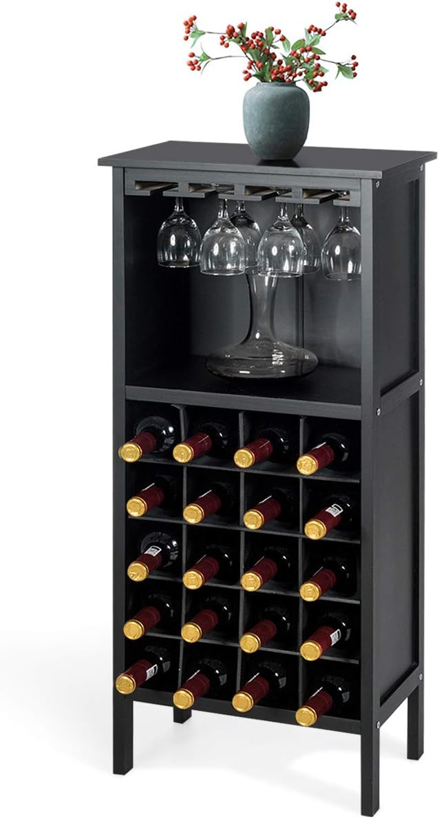 Casier a Vin, avec 20 Emplacements et Porte-gobelet, Etagere a Bouteille en Pin 42 x 24,5 x 96 CM pour Cave, Collier, Cuisine, Salon, Chambre (Noir)