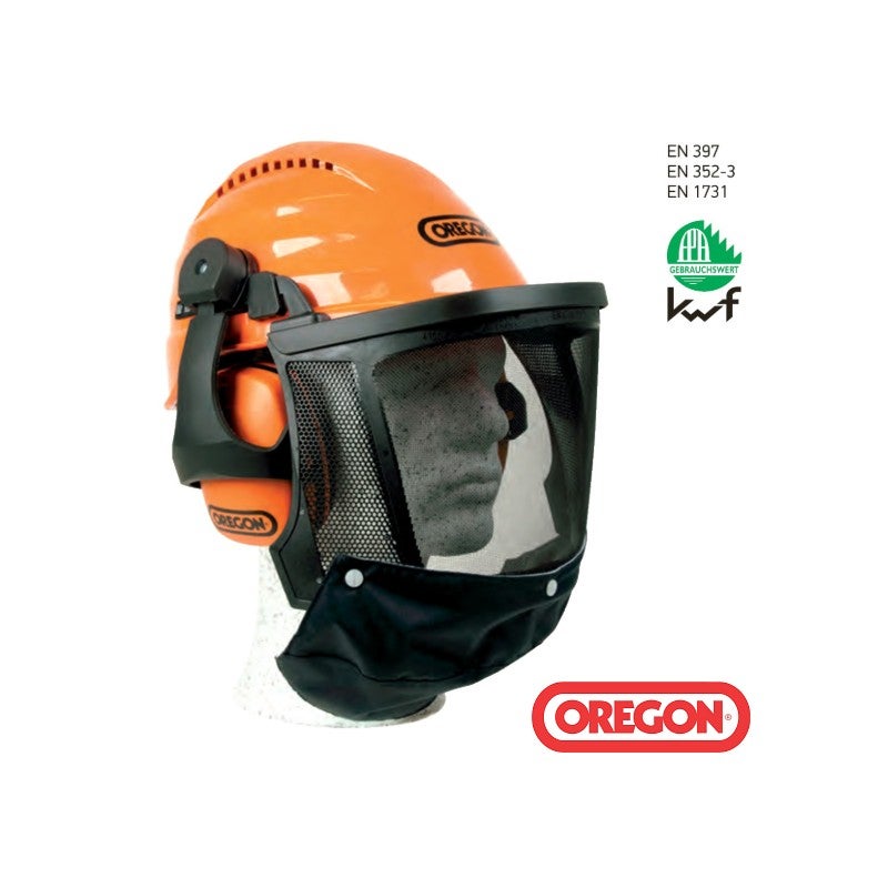Ce casque Oregon est ce qui se fait de mieux actuellement en terme de casque forestier.C'est un modèle semi-pro qui est résistant aux chocs et rayures, bénéficie d'un ajustement précis par système Pull-Push et harnais 4 points et est équipé d'une visière en mailles d'acier inoxydable avec relèvement et abaissement, d'oreillettes réglables avec atténuation 27dB et d'une protection menton / cou amovible.Voir toutes ses spécificités en photo.