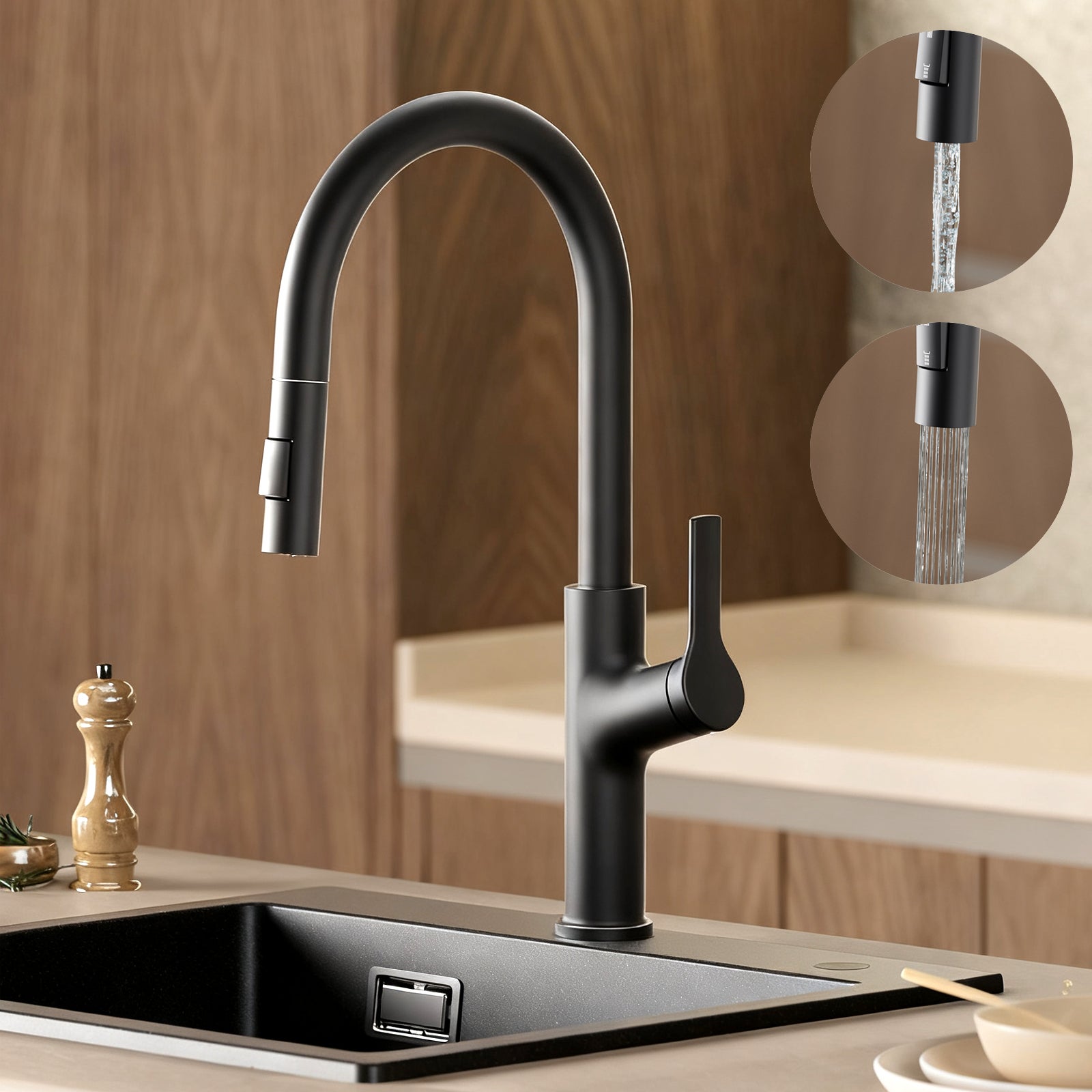 Cecipa max Mitigeur Cuisine avec Douchette Extractible Rotatif à 360°Robinet Cuisine avec 2 Modes de Pulvérisation Robinet Evier Inoxydable Noir