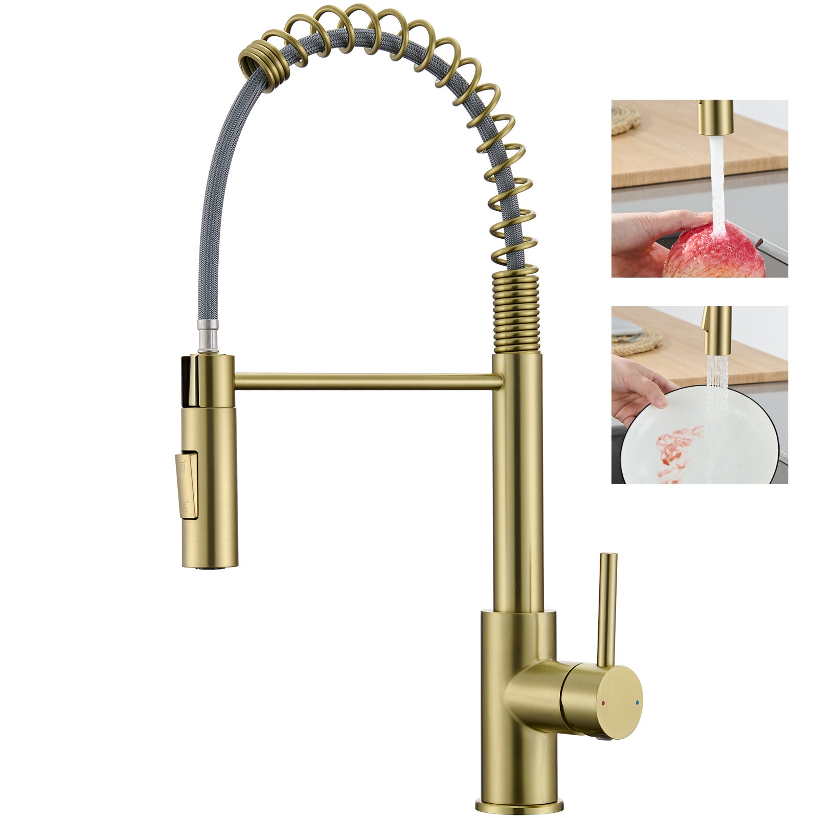 Ce robinet de cuisine est équipé d'un tuyau à ressort en acier inoxydable et d'un mécanisme de rotation à noyau inox, garantissant des années de fiabilité sans usure prématurée.