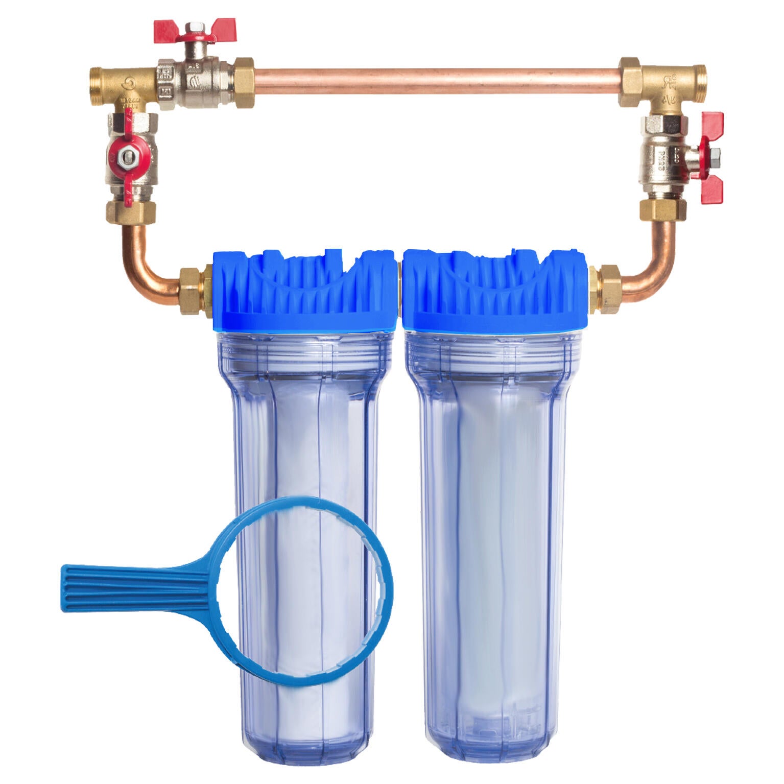 | Composition du kit | Filtre anti-impuretés, filtre antitartre et filtre anticorrosion. Fournis avec By-Pass et clé de desserrage |