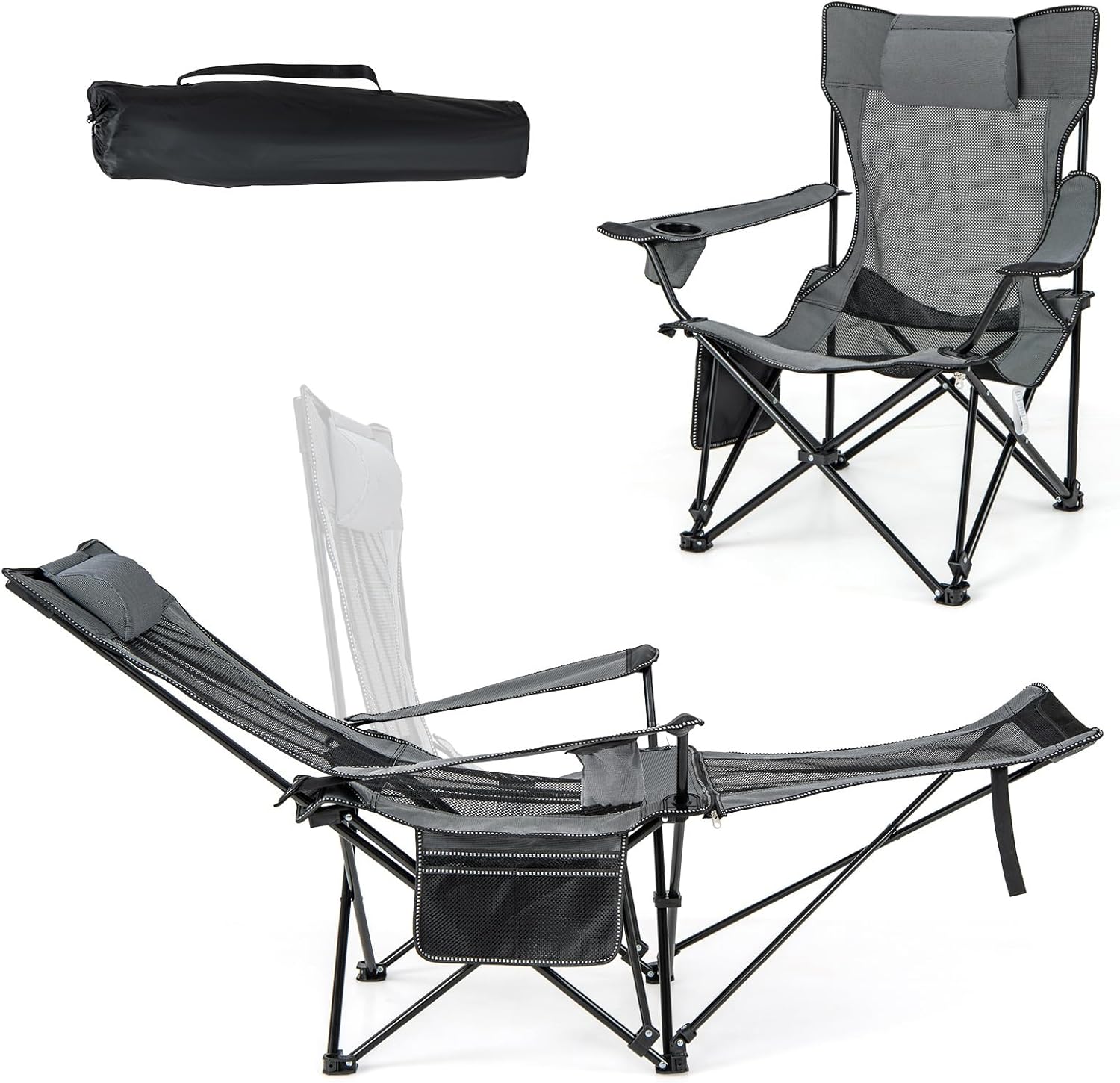 - 【Chaise de Camping 2 en 1】Dotée d'un repose-pieds amovible, cette chaise longue de camping sert à la fois de fauteuil inclinable et de chaise. Ouvrez simplement la fermeture éclair et tirez les pieds inférieurs vers le haut, et le repose-pieds sera facilement retiré.