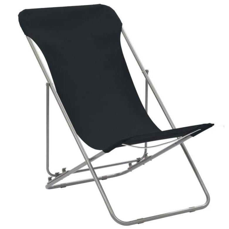 Chaise de jardin pliante tissu noir et métal Ecio - Lot de 2