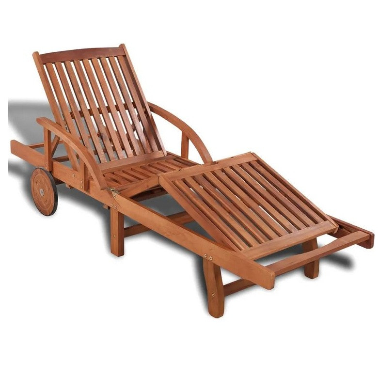 Chaise longue à roulettes acacia massif foncé huilé Sikash