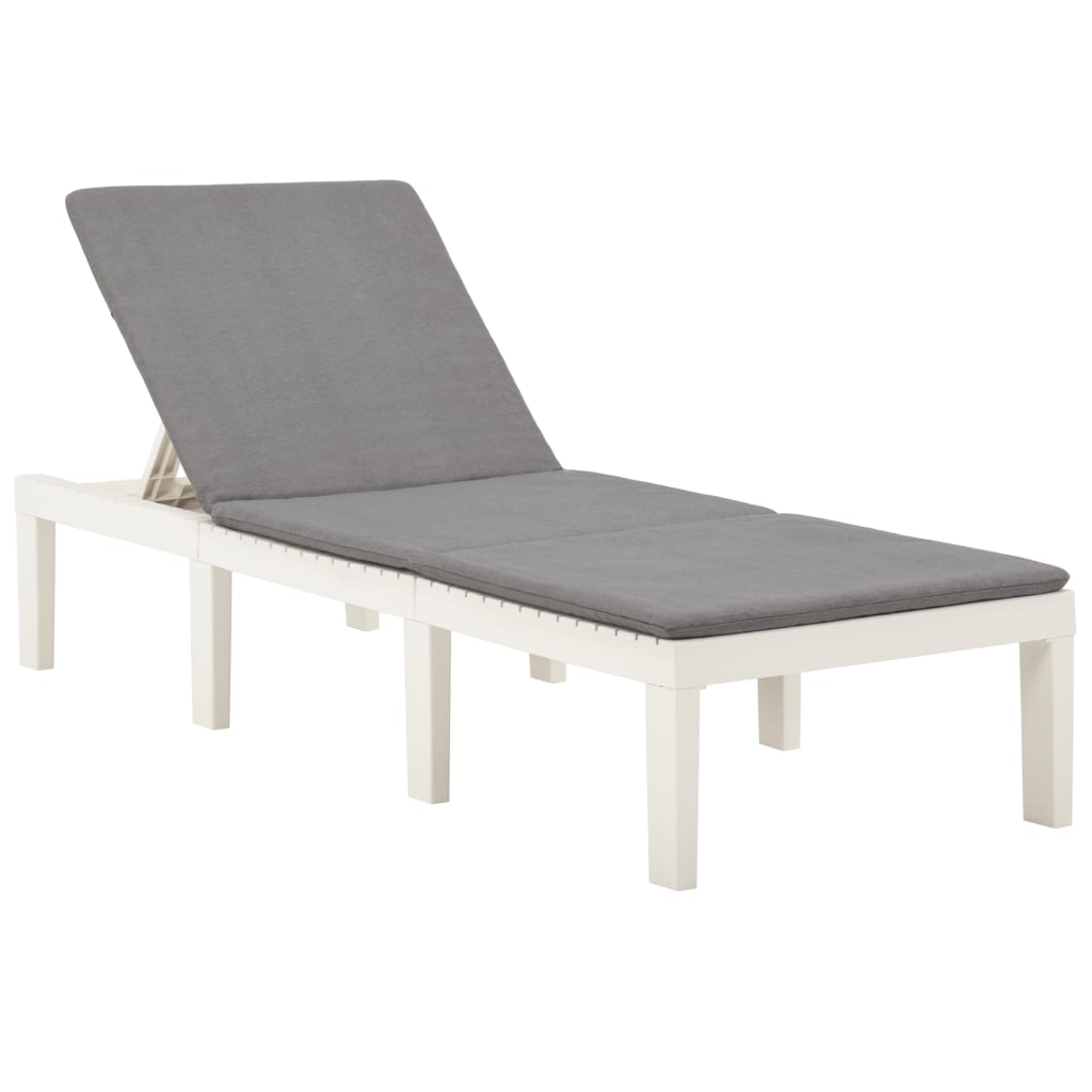 Avec cette chaise longue, vous aurez toujours un endroit confortable pour vous détendre dans votre espace de vie extérieur. Cette chaise longue de jardin est en plastique, ce qui la rend facile à nettoyer. Le dossier est réglable afin que vous puissiez toujours trouver la position la plus confortable. Grâce à son design léger, vous pouvez la déplacer facilement. De plus, le coussin ajoute du confort supplémentaire. Couleur : blanc Couleur du coussin : anthracite Matériau : plastique Matériau du coussin : tissu (55 % coton, 45 % polyester) Dimensions : 195 x 65 x 32 cm (l x P x H) Épaisseur du coussin : 3,5 cm Dossier réglable en 5 positions Assemblage requis : Non