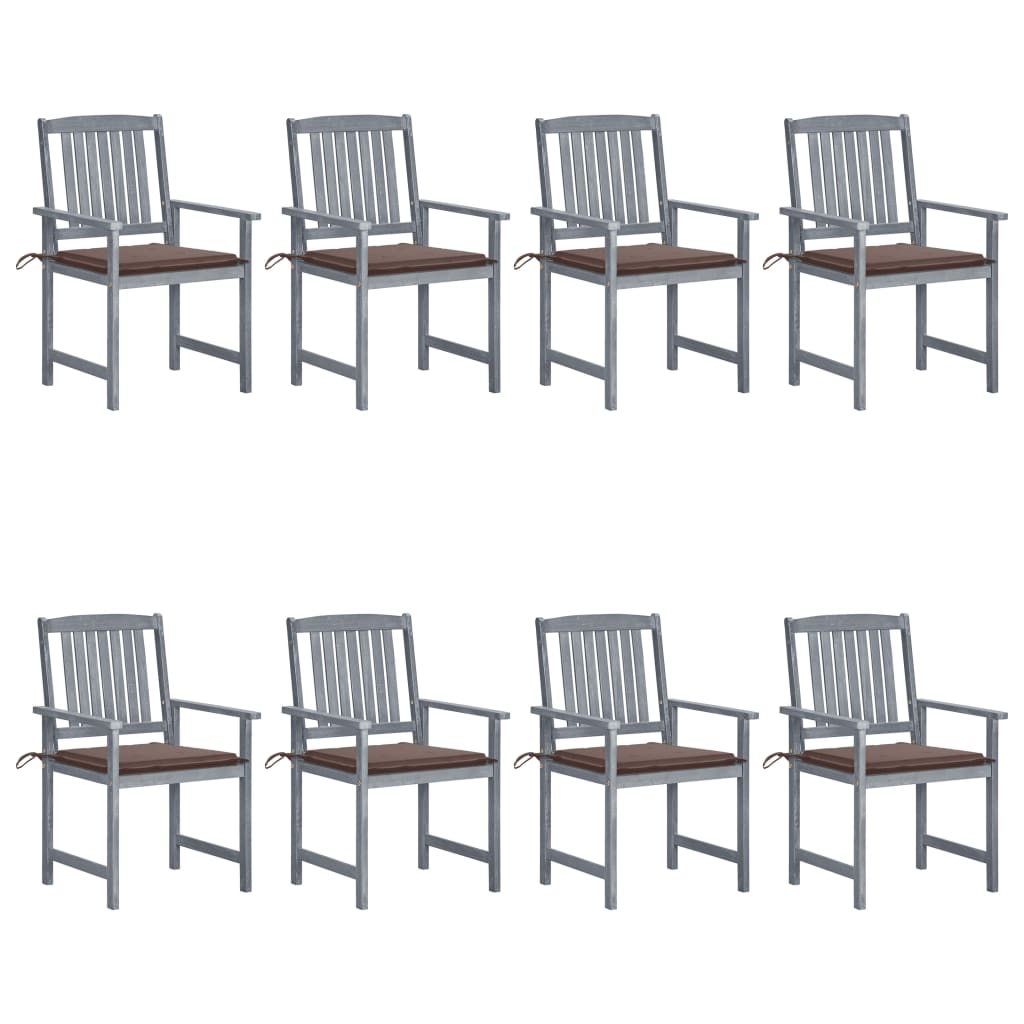 Chaises de jardin avec coussins 8 pcs Bois d'acacia solide Gris