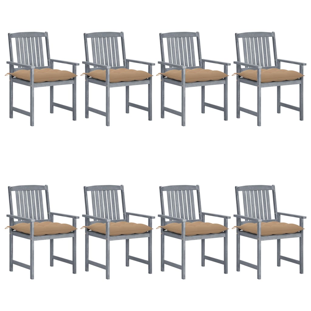 Chaises de jardin avec coussins 8 pcs Bois d'acacia solide Gris