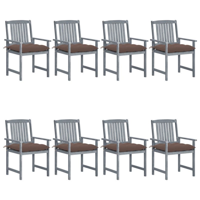 Chaises de jardin et coussins lot de 8 Bois acacia solide Gris