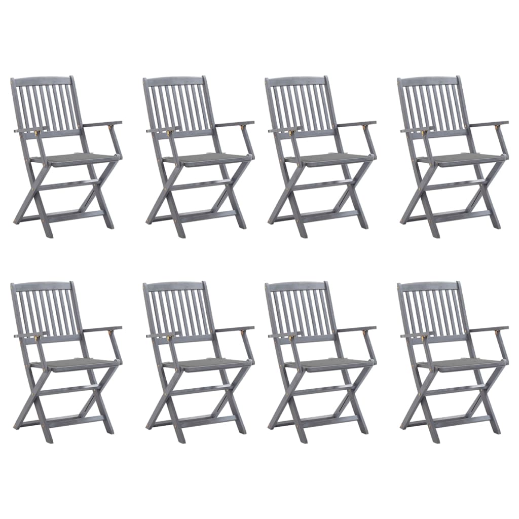 Chaises pliables d'extérieur 8 pcs avec coussins Bois d'acacia 2