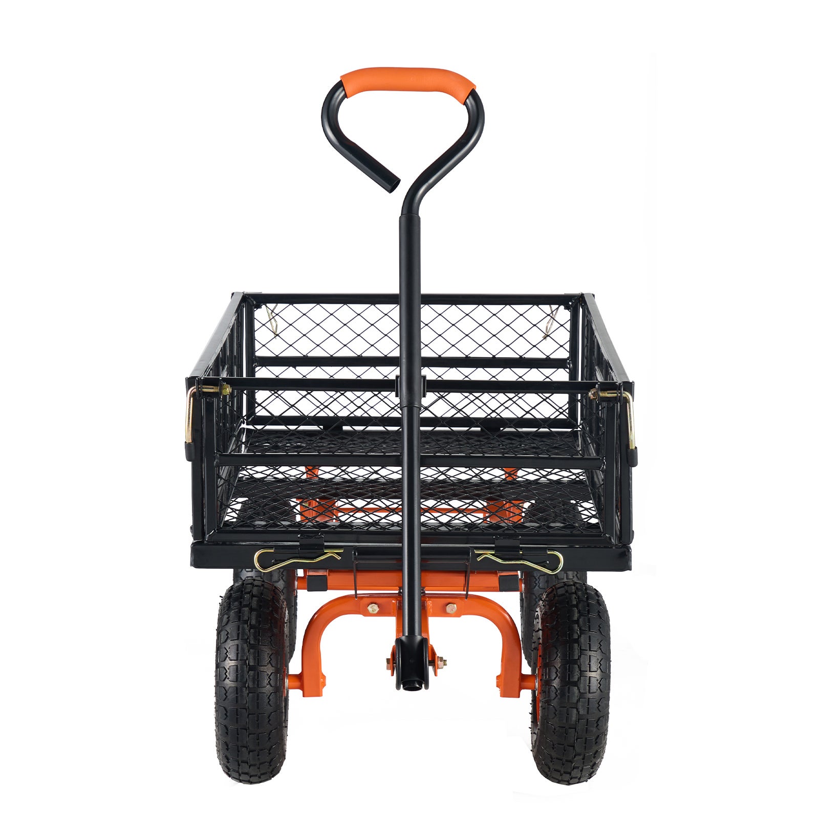 Le chariot à benne basculante de SucceBuy est conçu pour être polyvalent : transportez du bois, de la terre et d'autres matériaux, puis retirez simplement les côtés pour le transformer en plateau. Cette configuration à plat est parfaite pour les charges plus importantes comme les engrais, rendant vos tâches de transport simples et efficaces.