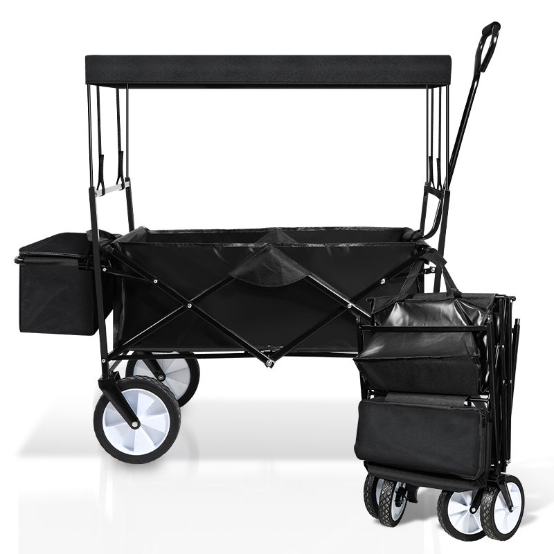 Chariot Pliable avec Toit Chariot de Jardin Pliable capacité de Charge de 80 kg Noir