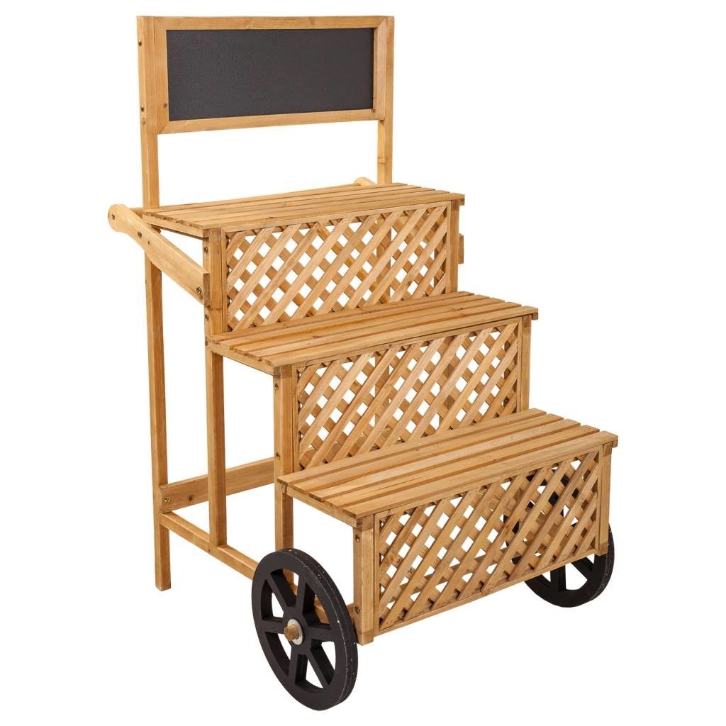Chariot présentoir en bois marron avec ardoise 70x71x116h