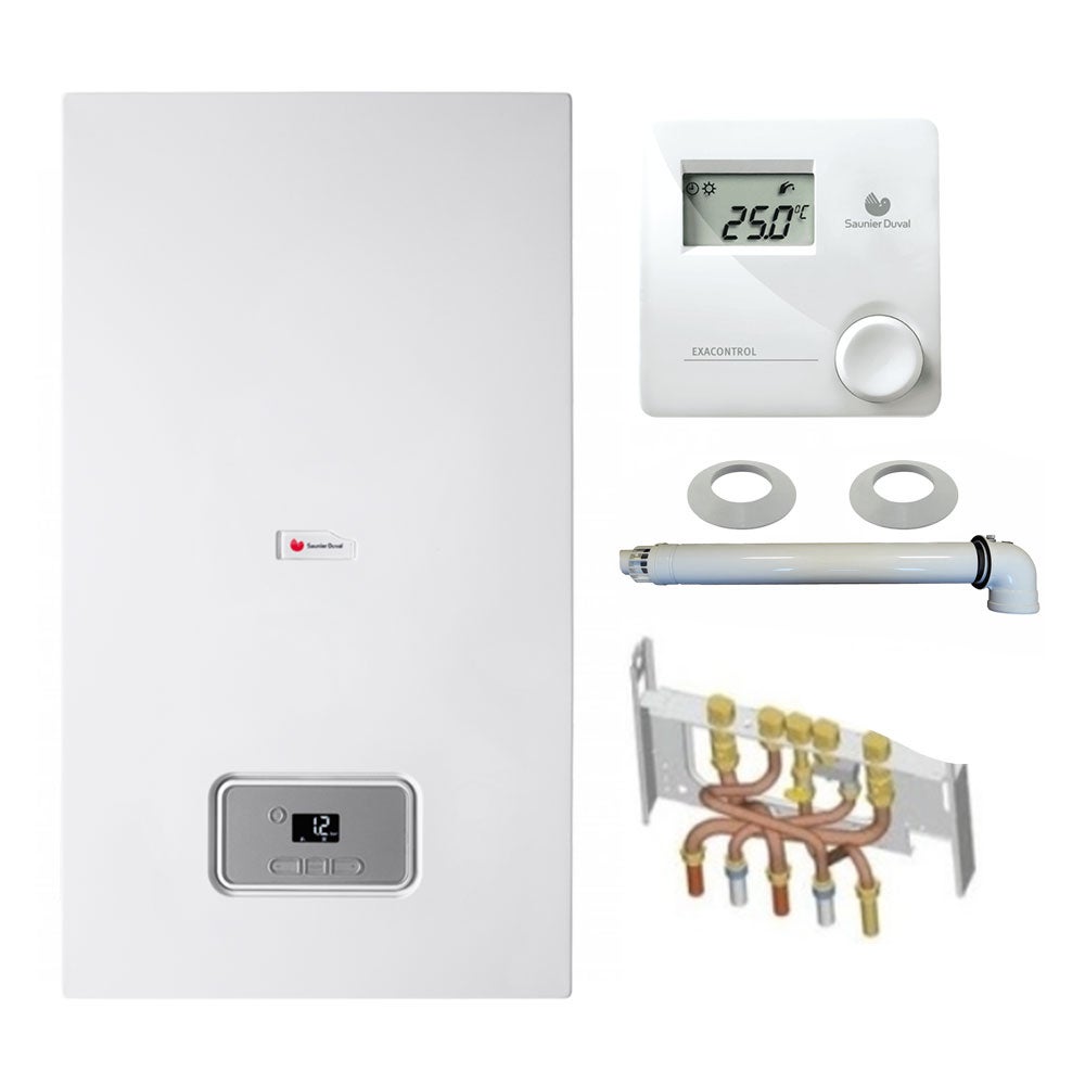 Chaudière Gaz Condensation SemiaFast Condens Saunier Duval 25 kW Complète (Ventouse + Douilles + Dosseret) avec Thermostat Filaire