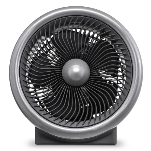 Dans les appartements à haut plafond, il est difficile de chauffer uniformément l'espace. La technologie Turbospin permet d'obtenir une circulation de l'air régulière dans toute la pièce. L'air est aspiré dans le ventilateur depuis l'arrière de l'appareil et entre en contact avec les cinq pales de l'hélice qui tourne à grande vitesse. Les pales présentent une courbe fortement accentuée. Ceci permet de d'obtenir un tourbillonnement de l'air particulièrement puissant et une extrême accélération du flux d'air. De plus, la grille de protection en forme de spirale contribue également à faire tourbillonner l'air. Le flux d'air tourbillonne comme une mini-tornade et se diffuse loin dans la pièce sous forme de colonne d'air en rotation. Ce puissant flux d'air atteint les zones froides et chaudes de la pièce et les brasse. Lorsqu'il arrive à un mur ou un coin, le flux d'air est renvoyé dans toutes les directions et retourne vers l'arrière du ventilateur. Il en résulte une circulation de l'air permanente.