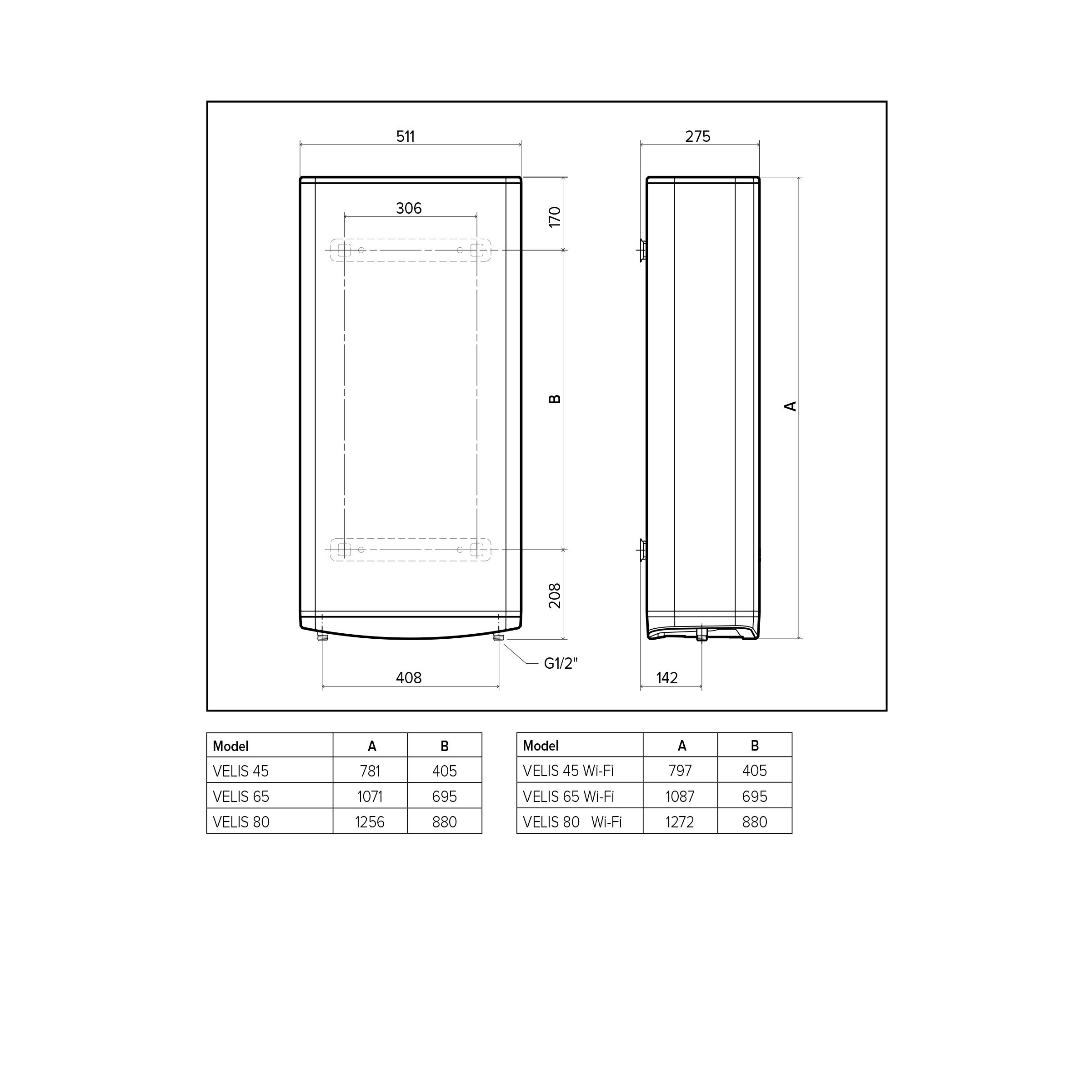 Chauffe eau électrique Plat Intelligent Multiposition VELIS DUNE Ariston 65 L