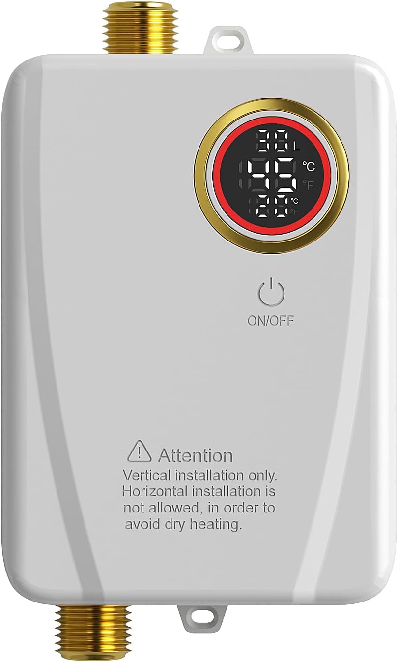 【Matériaux de haute qualité】 : Fabriqué en ABS de haute qualité, avec un raccord de tuyauterie standard international G 1/2" en laiton fin, ce chauffe-eau est compact et durable. La séparation de l'eau et de l'électricité garantit une utilisation sûre et fiable. Il est protégé contre les fuites, les projections d'eau (IPX4) et la surchauffe.