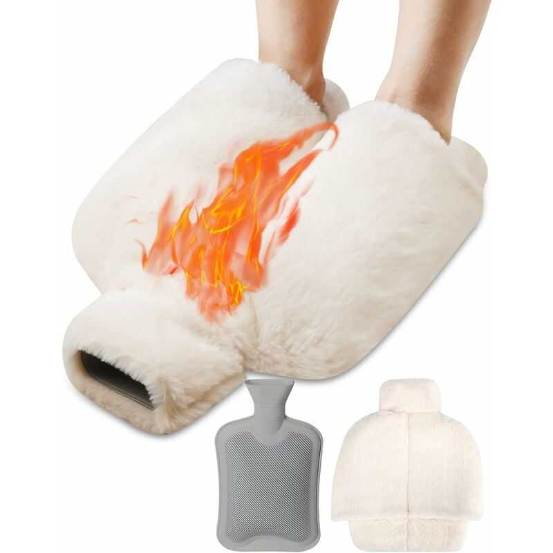 Chauffe Pied,2L Bouillotte Pieds non électrique avec Housse en Peluche Semelle Antidérapante Durable,Chaufferette Pieds Reutilisable