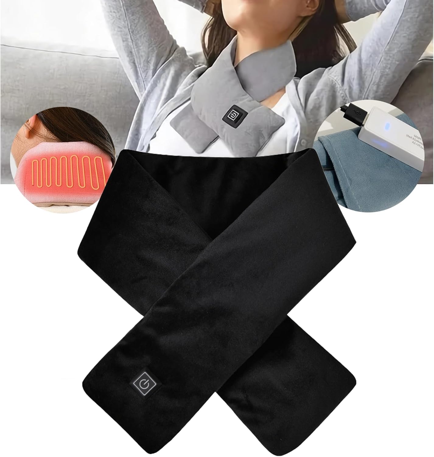 Chauffe-cou chauffant, écharpe chauffante rechargeable pour soulager la douleur, coussin chauffant,noir