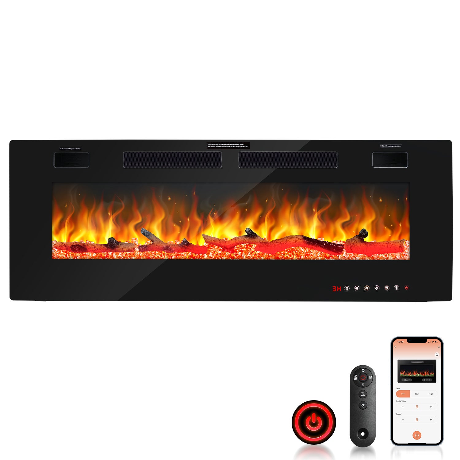 Convivial : la télécommande incluse est facile à utiliser. Vous pouvez également contrôler le foyer électrique via l'application ou l'écran tactile et l'allumer ou l'éteindre facilement depuis n'importe où dans votre maison.
