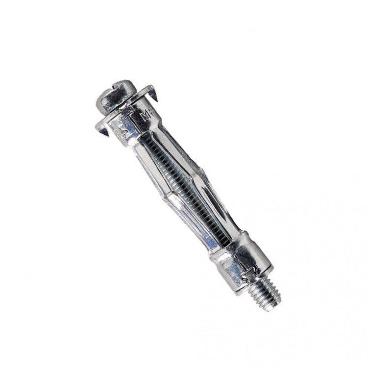Cheville métallique à expansion avec vis - Molly Classique. Fabrication monobloc traitée anti-corrosion. Cohésion parfaite des 3 parties. Système d'ancrage « en parapluie » pour une meilleure résistance. Tête détachable. Disparition dans la cloison. Matériaux : Cloison sèche, plaque de plâtre, brique creuse, autres corps creux jusqu'à 45 mm d'épaisseur (cloisons de doublage et contre-cloisons). Conditionnement au blister.