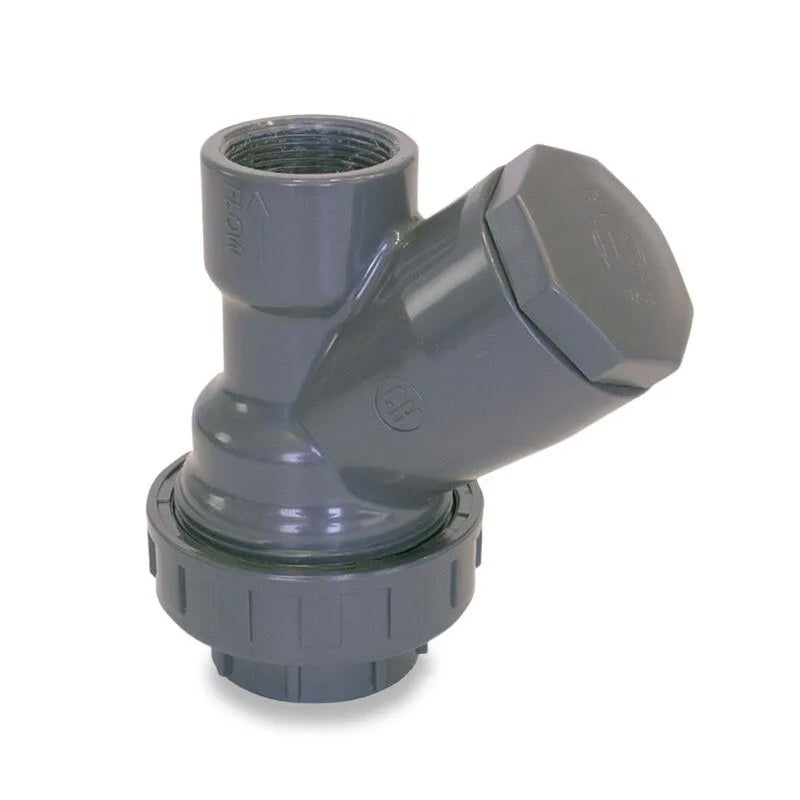Les clapets anti-retour à boule sont souvent utilisés dans le cas d'évacuation de l'eau, comme avec une pompe submersible. Dans un clapet anti-retour à boule, une boule ferme l'ensemble du clapet par l'effet de la gravité. En cas de passage de l’eau au travers d’un clapet anti-retour à boule, la boule est poussée sur le côté (forme de Y), laissant libre cours à l’eau. Dès que plus d'eau ne circule plus à travers le clapet anti-retour à boule, la boule retombe automatiquement, fermant le clapet anti-retour à boule et empêchant tout refoulement de l'eau. Attention : Cela signifie également que le clapet anti-retour à bille doit être installé verticalement dans tous les cas pour garantir l'effet de la gravité. Nous vous recommandons d'utiliser un clapet anti-retour si vous souhaitez pomper de l'eau dans des pièces. Si vous n'utilisez pas de clapet anti-retour, l'eau pompée qui se trouve dans le tuyau refluera dans votre pièce. De cette façon, votre pièce ne deviendra pas vide ni sèche. Un clapet anti-retour permet d'éviter une telle situation. La crépine avec clapet anti-retour est dotée d'un raccord fileté 1 ½'' femelle aux deux extrémités. Si vous travaillez par exemple avec des eaux souillées contenant des particules de saleté, il est alors possible de nettoyer la boule en dévissant le bouchon. Vous pourrez alors retirer la boule.