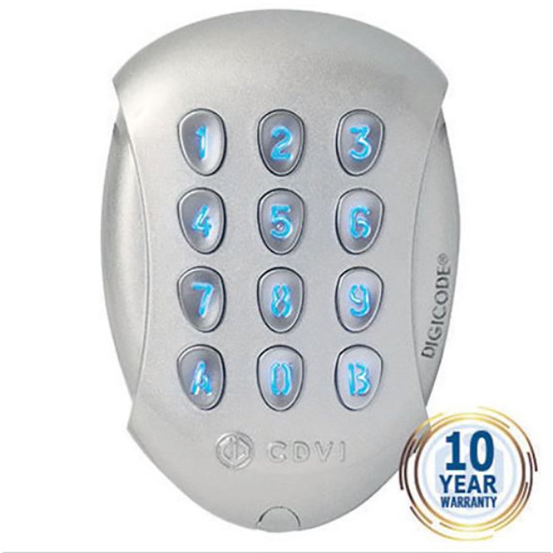 Clavier codé en applique lumineux de marque CDVI. 100 codes d'accès personnalisables individuellement par chaque utilisateur. Rétro-éclairage des touches. Protection de la boxcode électronique déportée par tropicalisation.