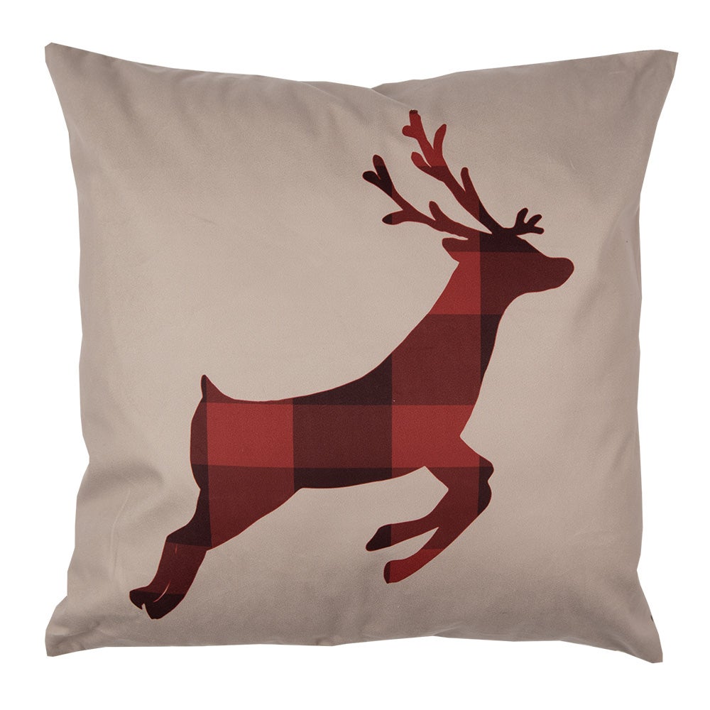 Clayre & Eef Housse de coussin 45x45 cm Rouge Marron Cerf
