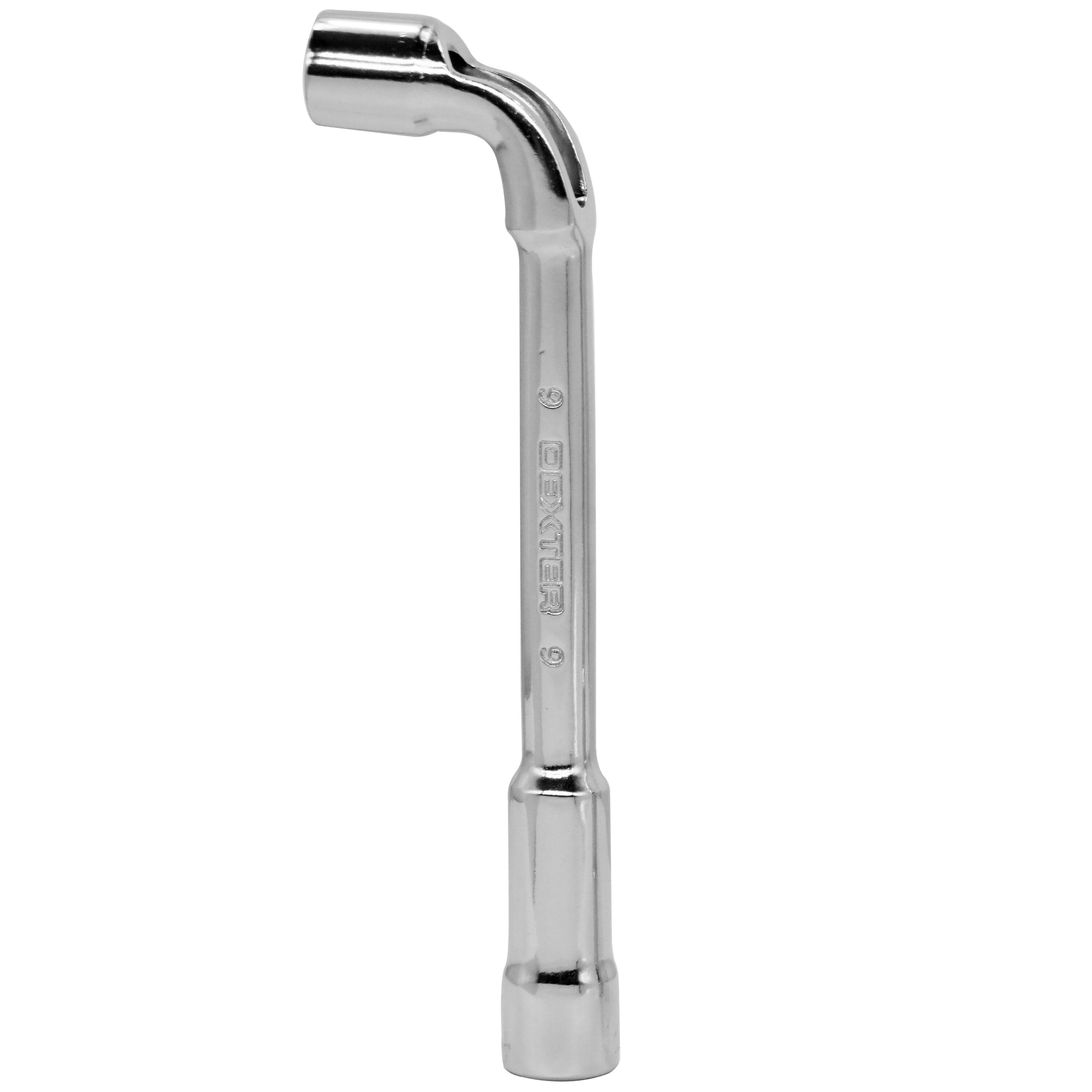 Clé à pipe 9mm DEXTER, idéale pour serrer/desserrer des écrous encastrés, des boulons ou sur une tige filetée.Le profil coudé a été pensé avec un orifice permettant de serrer un écrou sur une tige filetée sans limite de profondeur. Le profil droit favorise l'accès aux écrous encastrés. L'acier chrome vanadium apporte une grande résistance.