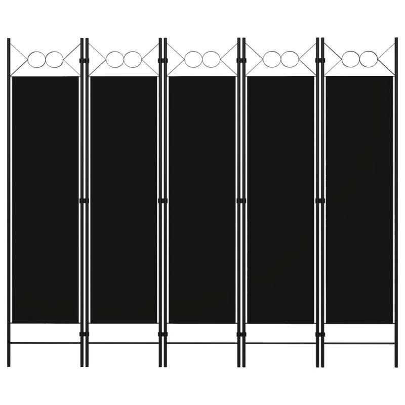 Structure robuste et design épuréLe cadre en fer enduit de poudre noir assure stabilité et durabilité, tandis que les 5 panneaux en polyester résistant apportent une touche contemporaine. Le cercle supérieur ajoute un élément décoratif discret pour une intégration harmonieuse dans tout intérieur.