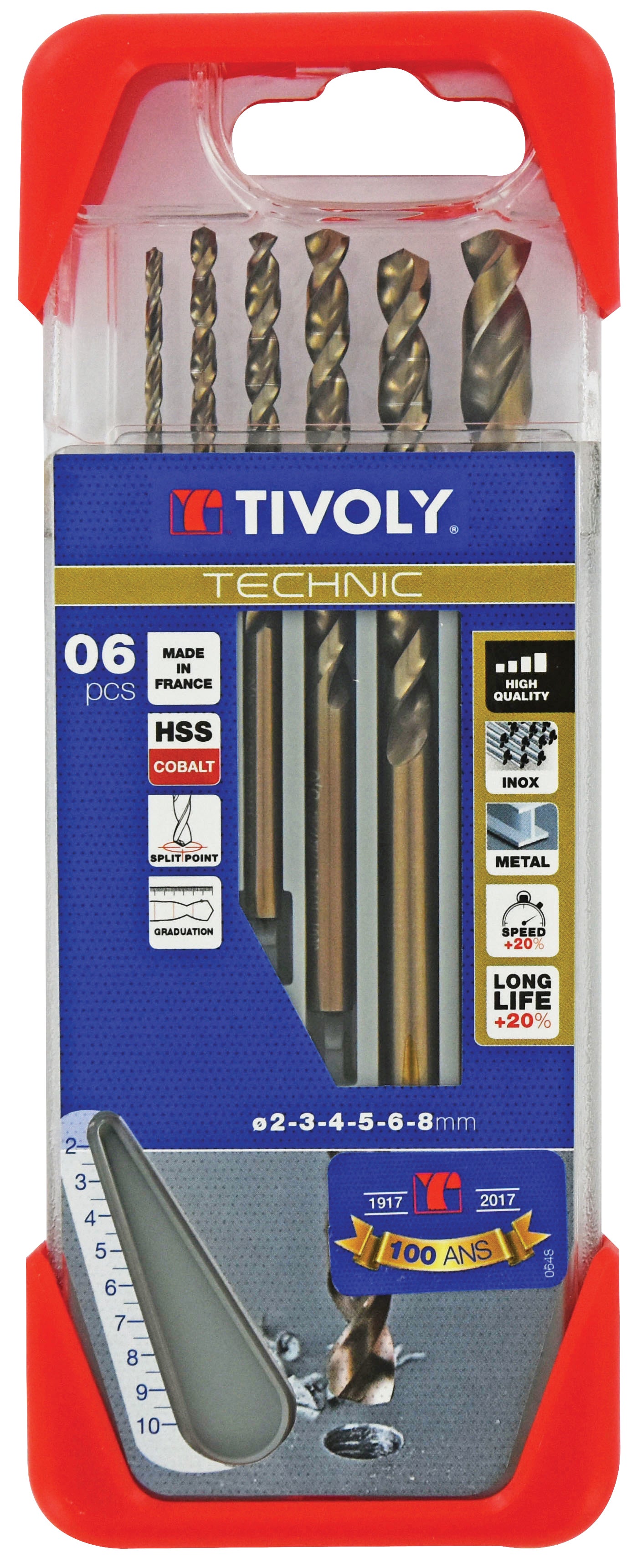 Coffret de 6 forets à métal HSS, Diam.2 à 8 mm TIVOLY