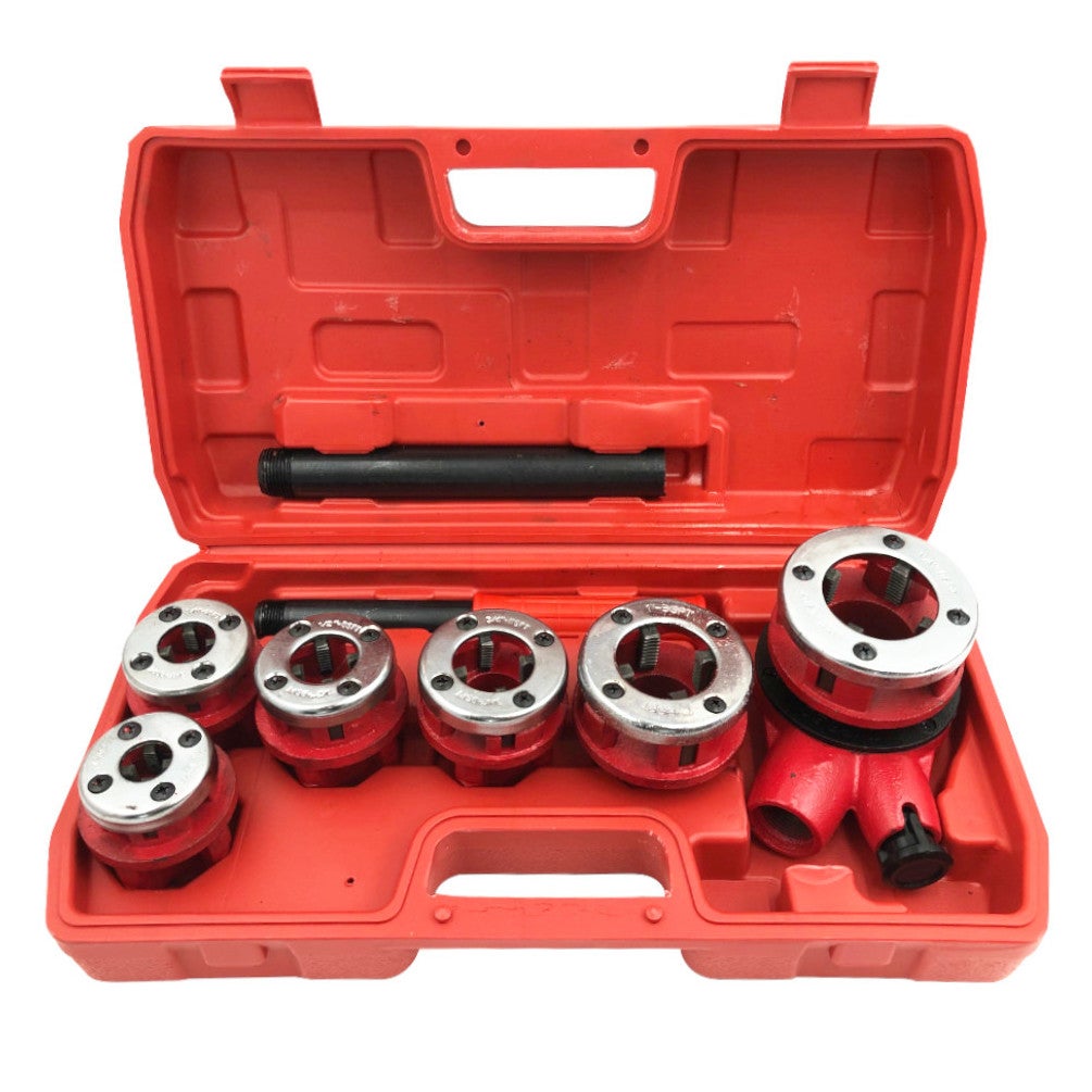 Chaque filière est fabriquée en fonte robuste, intégrant quatre peignes en acier allié assurant une découpe nette et un filetage propre, même sur les matériaux les plus résistants. Les trous d'évacuation intégrés facilitent l'élimination des copeaux, garantissant un travail plus fluide et sans obstruction. Cette conception solide assure une durabilité exceptionnelle, même lors d'une utilisation intensive sur chantier.