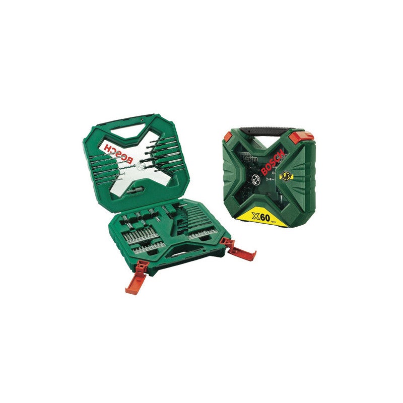 Coffret X-Line Classic 60 pièces avec forets à métal, à pierre et à bois, embouts, douilles et porte-embouts magnétique. Contient 8 forets à métal HSS Ø 2-6 mm, 6 forets à pierre Ø 4-8 mm, 7 forets à bois Ø 3-10 mm et des forets de 25 mm et 50 mm. Convient pour le perçage et le vissage professionnels dans divers matériaux. Coffret Bosch compact et robuste. Contenu : 60 pièces (8 forets à métal HSS, 6 forets à pierre, 7 forets à bois, 10 forets de 50 mm, 20 forets de 25 mm, 6 douilles de 7 à 13 mm, adaptateur de douille, porte-embout magnétique, fraise) Dimensions du coffret : env. 259 × 63 × 243 mm