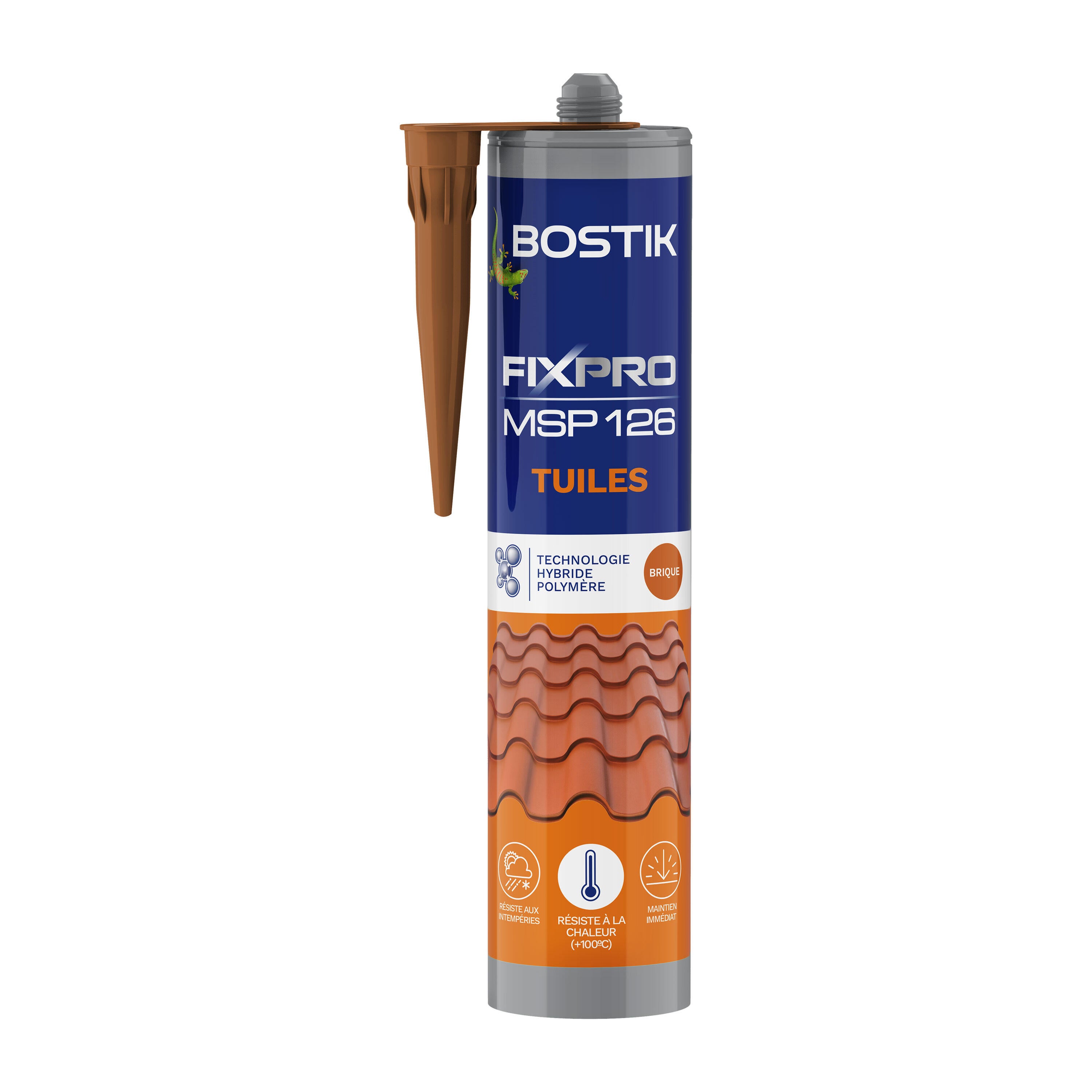 La colle mastic BOSTIK Fixpro msp 126 290ml marron est idéale pour coller rapidement et facilement des tuiles sur tous les supports, même humide (hors PE, PP et PTFE). Sa formule permet de coller des tuiles canal et tuiles siliconées, de coller des tuiles entre elles, sur plaques de fibre-ciment, sur voltiges et liteaux ainsi que d'être un complément de fixation des tuiles à emboîtement. Très performante, la colle mastic BOSTIK Fixpro msp 126 Tuiles 290ml marron offre un maintien immédiat, et résiste aux intempéries (pluie, neige, vent, gel...), aux UV et à la chaleur (+100°C), aux chocs et vibrations ainsi qu'à l'arrachement. Une fois posé, ce mastic de fixation de couleur tuile pour un rendu impeccable, peut être peint après séchage. Sans solvant (selon norme EN 923) - Formule hybride polymère - Résistance maximale 24h à 48h après collage.