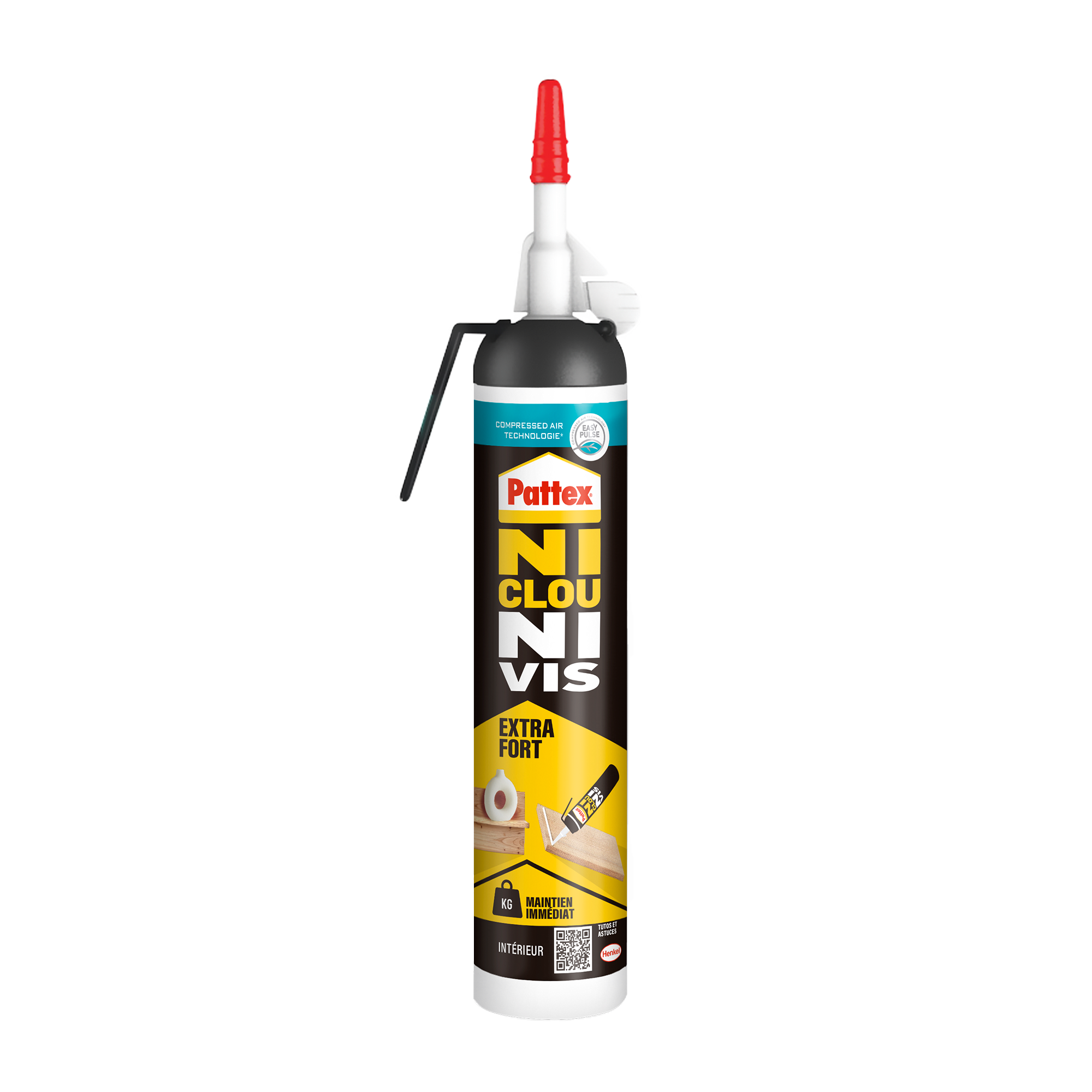 Conditionné en système cartouche avec pistolet intérgré, Pattex Ni Clou Ni Vis EXTRA FORT & RAPIDE est une colle acrylique sans solvant et sans odeur. Sa formule super puissante vous offre un maintien immédiat élevé en un simple encollage.
