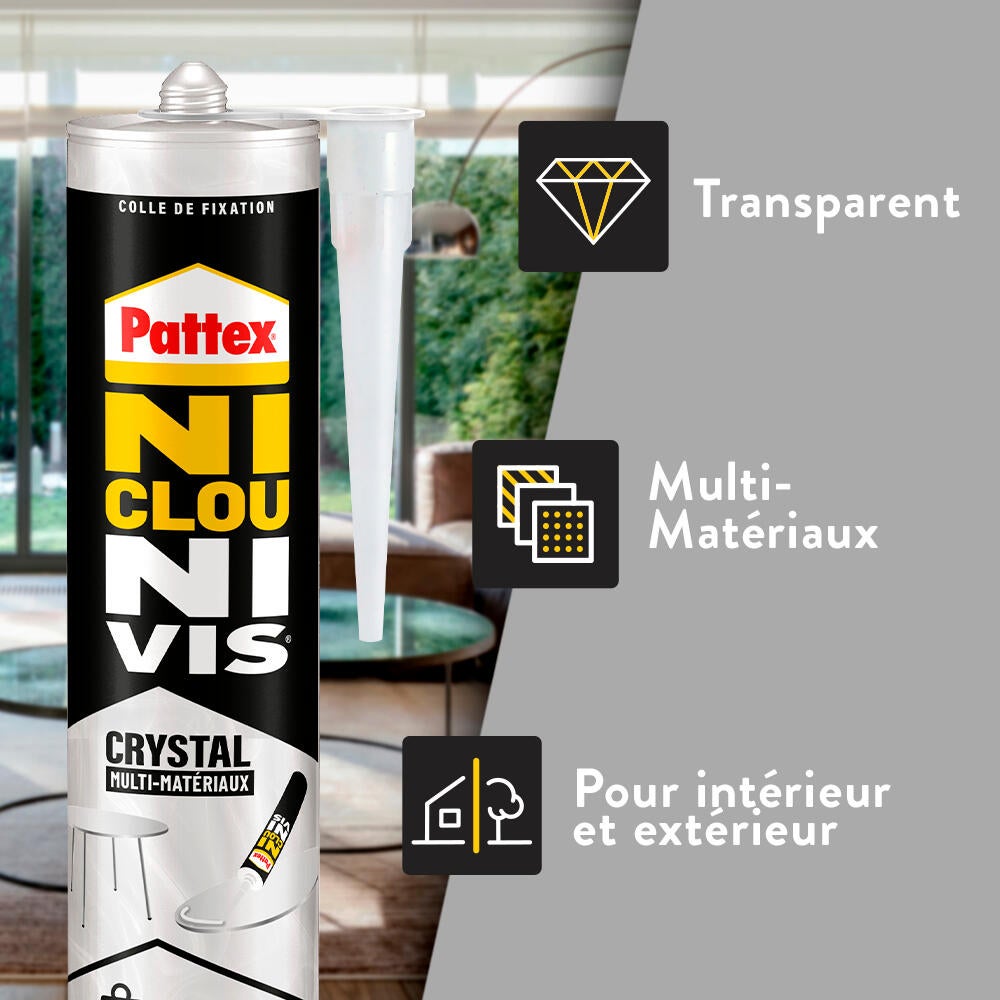 Colle de fixation pâte MS polymère Ni clou ni vis crystal PATTEX, 290 g transpar