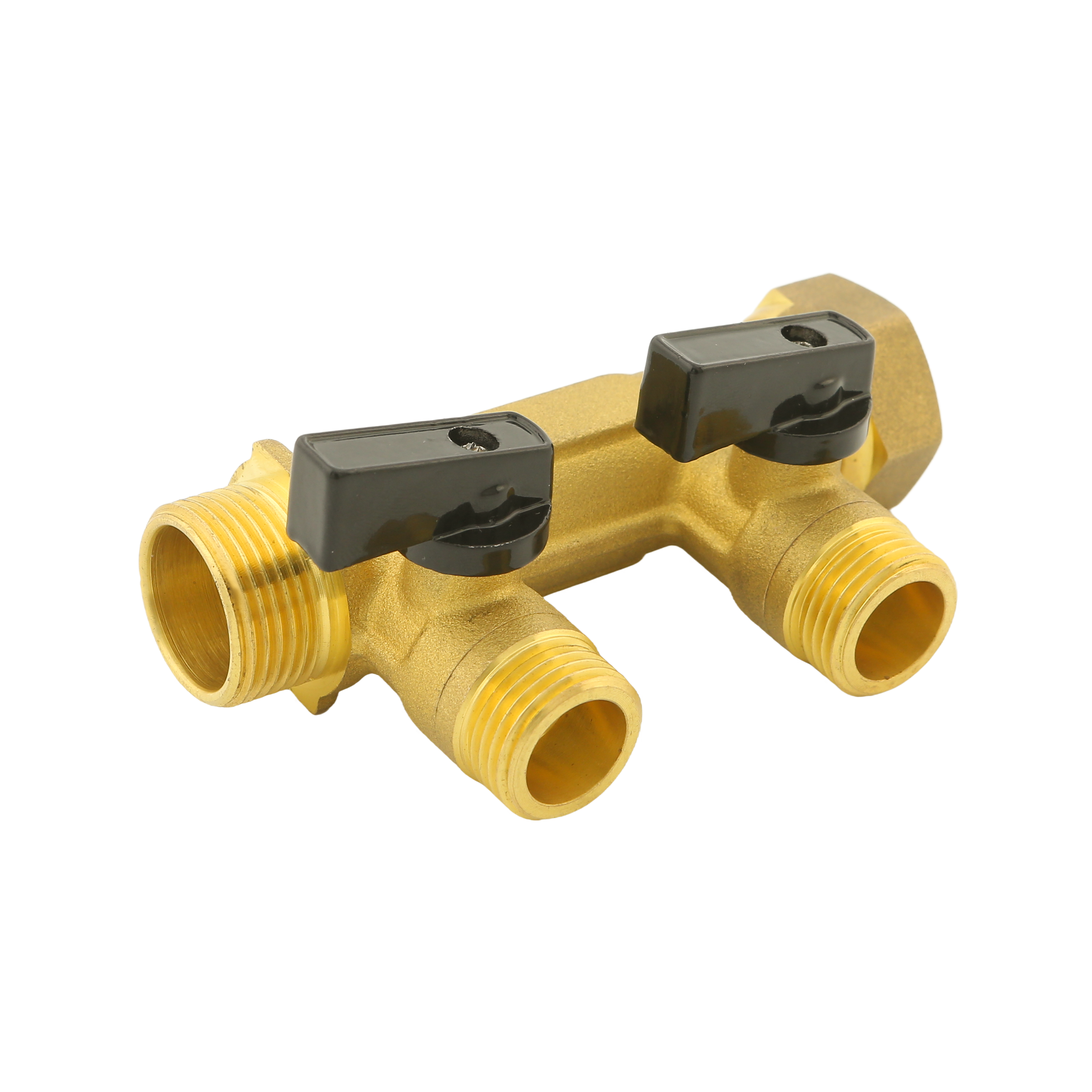 Collecteur laiton EQUATION muni de vanne d'arrêt et avec écrou libre permettant une fixation rapide et facile avec entrée et sortie mâle/femelle 3/4" (20/27) incluant 2 départs mâles 1/2" (15/21). Entre chaque sortie l'entraxe est de 50 mm. Ce collecteur permet la distribution de l'eau chaude ou de l'eau froide, sanitaire et chauffage dans toute votre habitation. Il est garanti 5 ans.