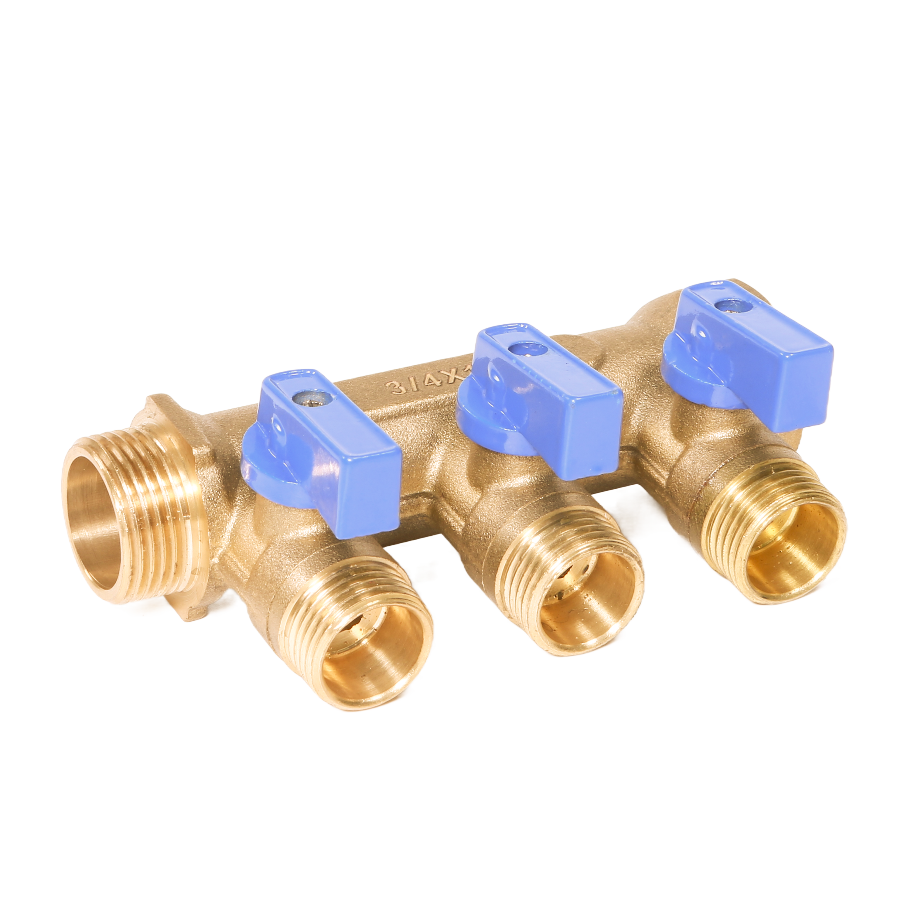 Collecteur en laiton EQUATION avec entrée et sortie mâle/femelle 3/4" (20/27) incluant 3 départs mâles 1/2" (15/21) munis de vanne d'arrêt. Entre chaque sortie l'entraxe est de 50 mm. Ce collecteur permet la distribution de l'eau chaude ou de l'eau froide, sanitaire et chauffage dans toute votre habitation. Il est garanti 5 ans.