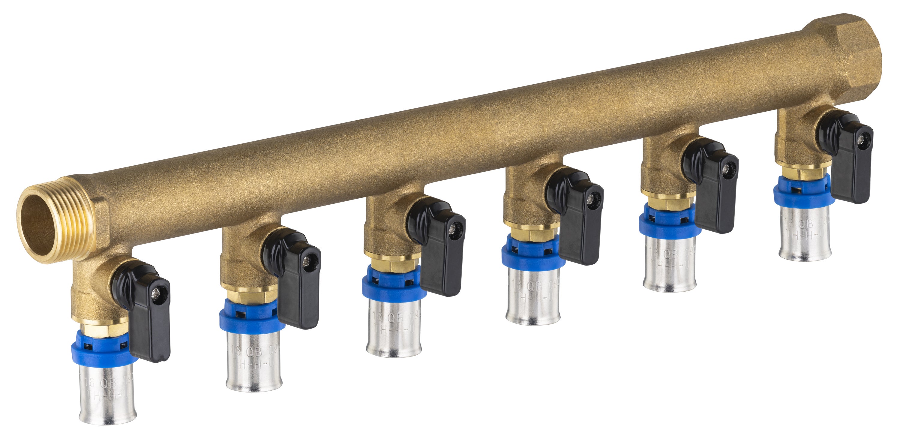 Collecteur mâle - femelle 20x27 - 6 départs multicouche à sertir Ø16 à vannes NOYON & THIEBAULT