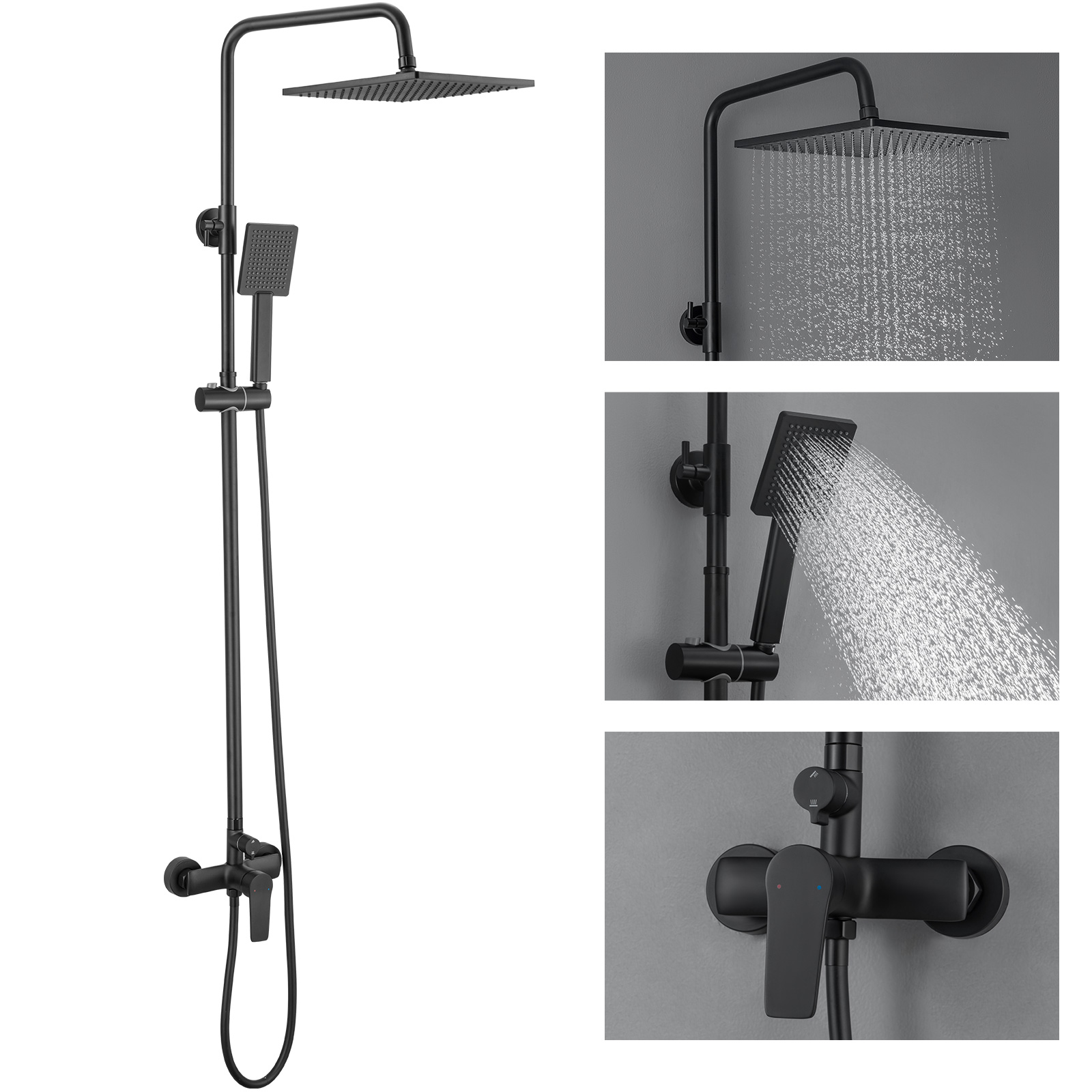 Colonne de Douche Noir 2 Fonctions Ensemble de Douche en Laiton avec Douchette de tête Carrée , Haute Réglable 93-130 cm
